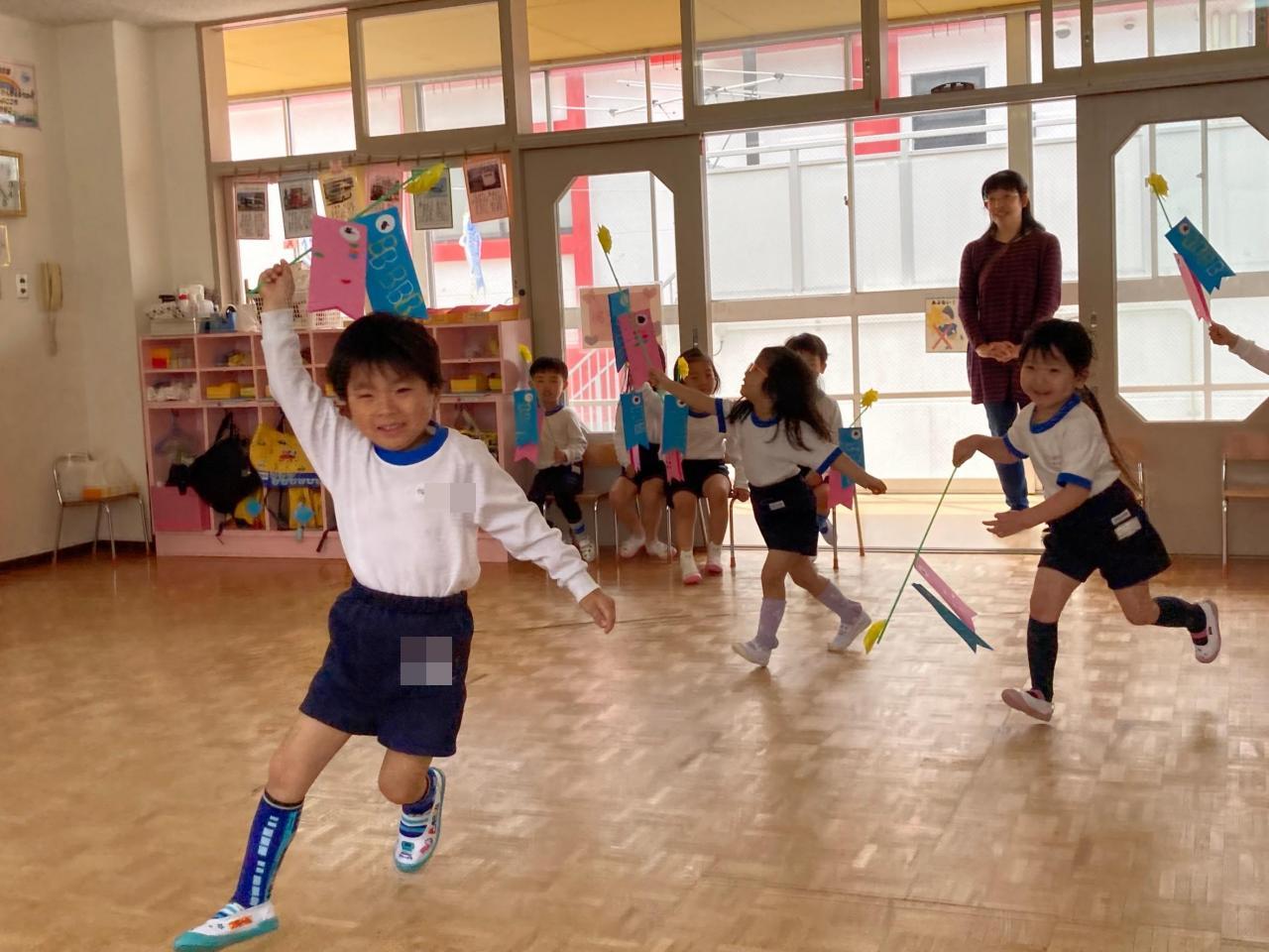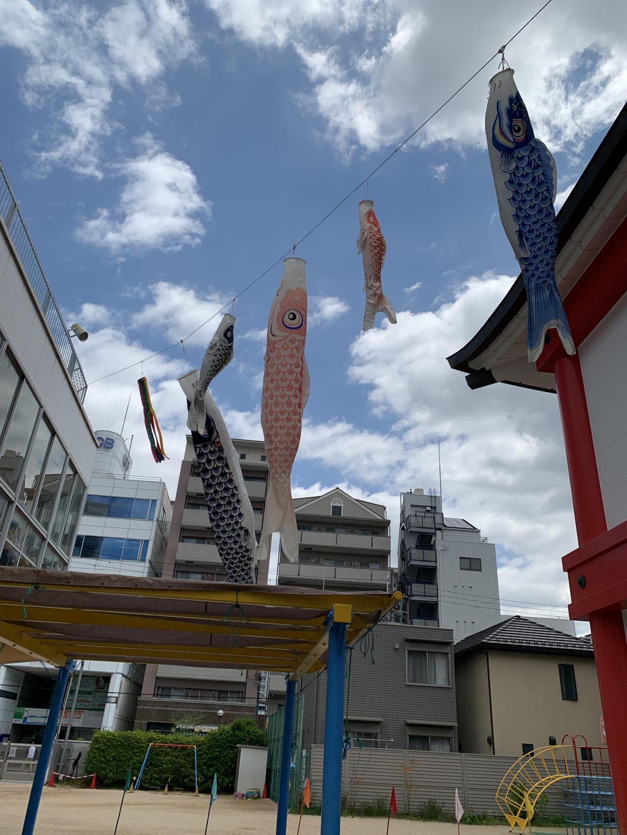 5月5日は子どもの日 子ども達が元気に育って、大きくなったことをお祝いする日です。幼稚園のこいのぼりさんもスイスイ泳いでいますよ🎏