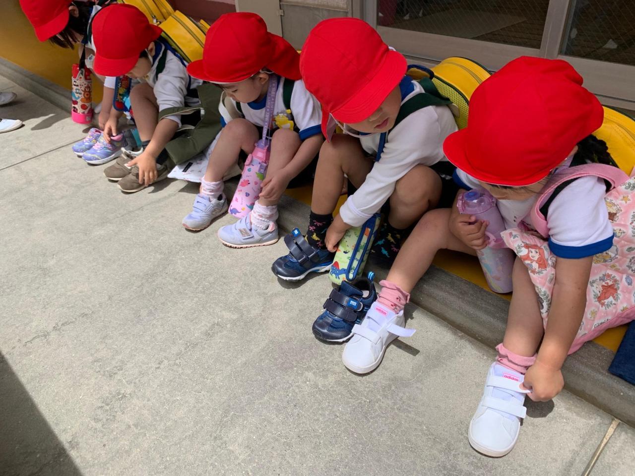 出来上がったこいのぼりや粘土で遊びました🎏降園前、自分で靴を履いて帰る準備中!