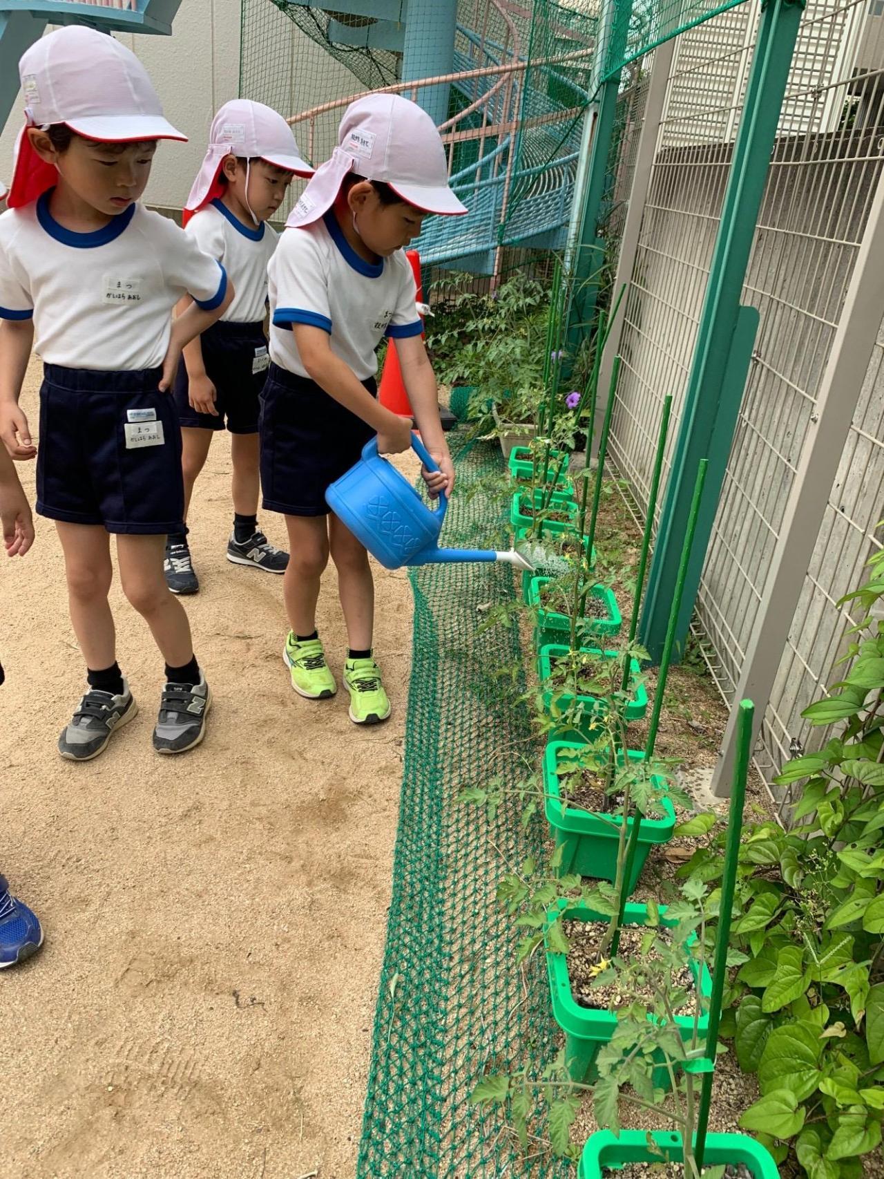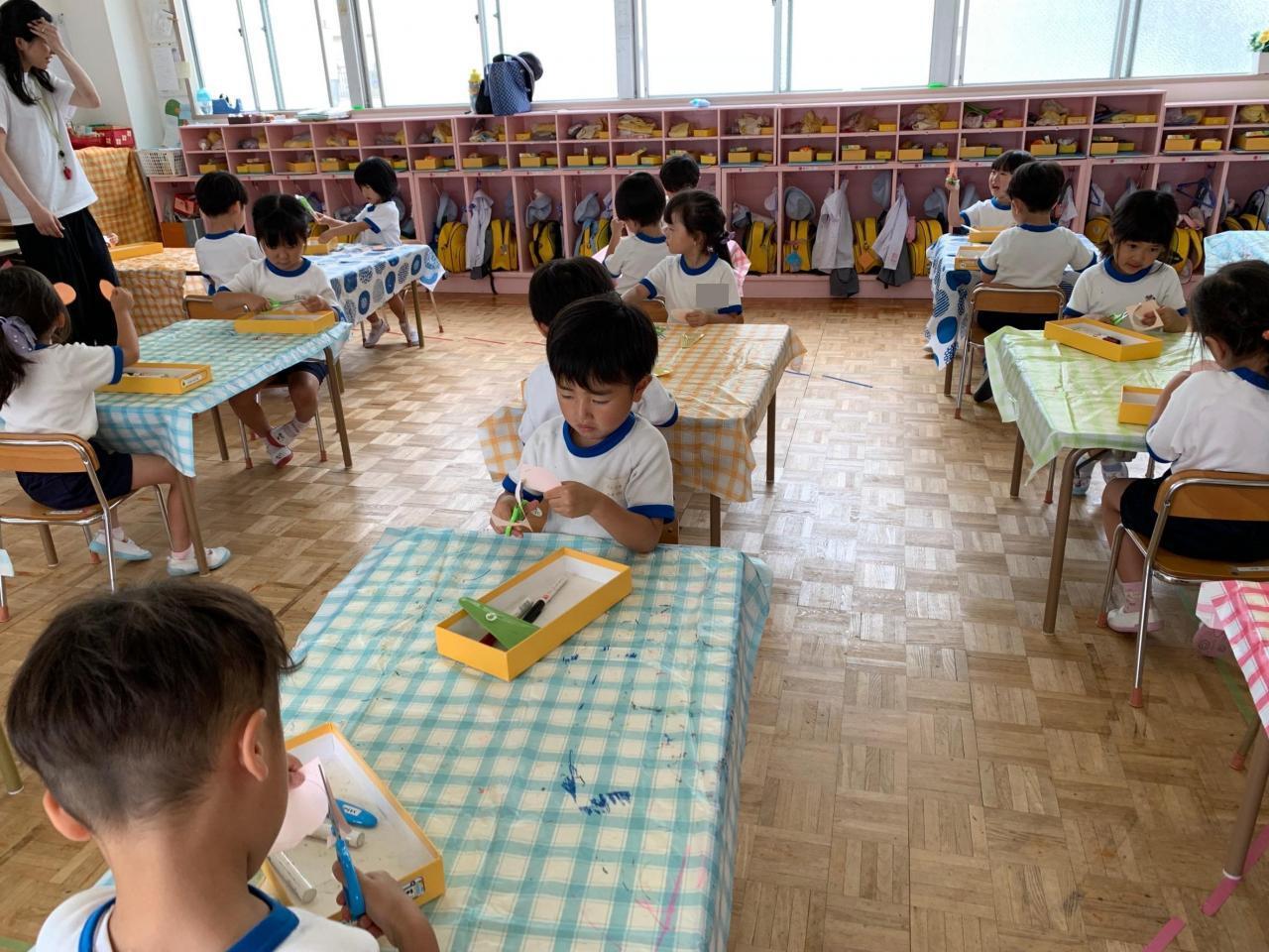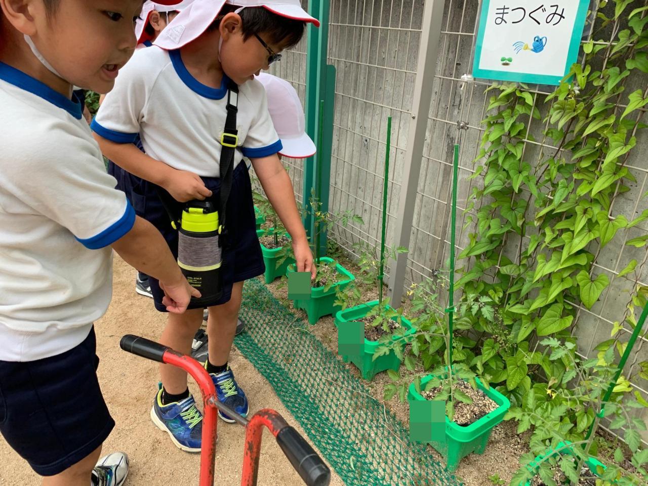 お知らせで様子をお伝えした年長さんのミニトマトです🍅「トマトいっぱいなってる!早く食べた~い!」と言いながら、水やりをしたり観察をしていました✨7月、年長さんは夏祭りをします🎵夏祭りの飾りに使うちょうちんを作りましたよ。楽しみだね!