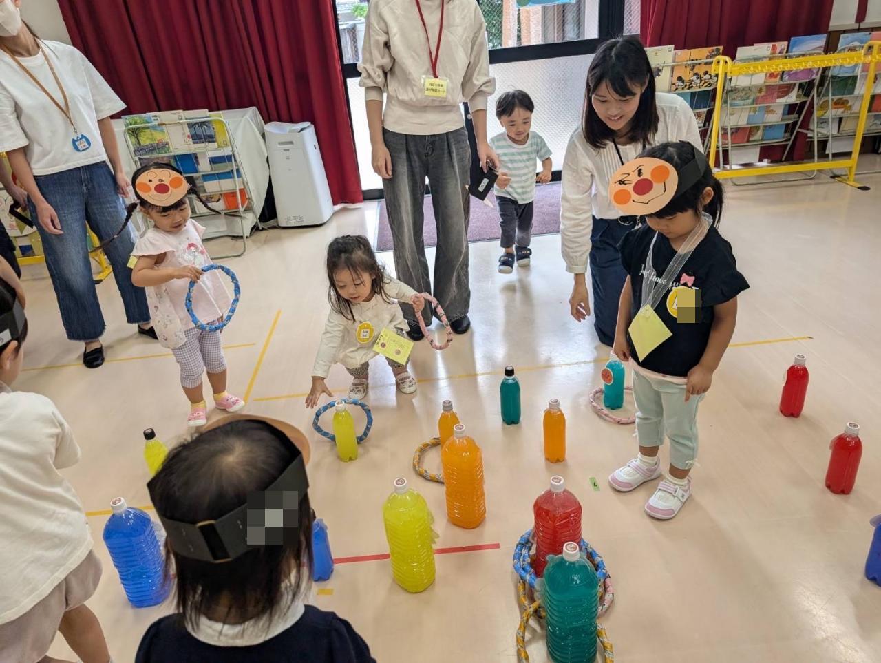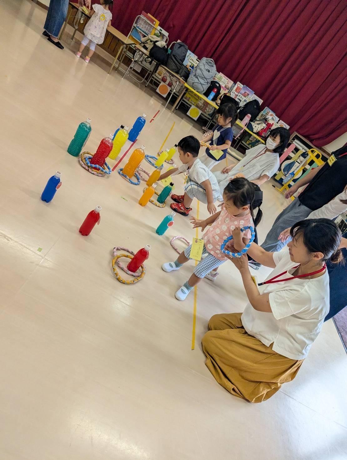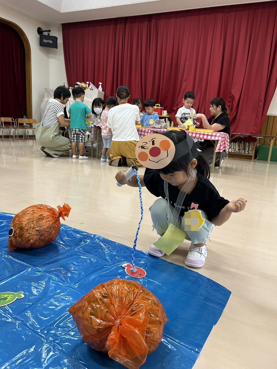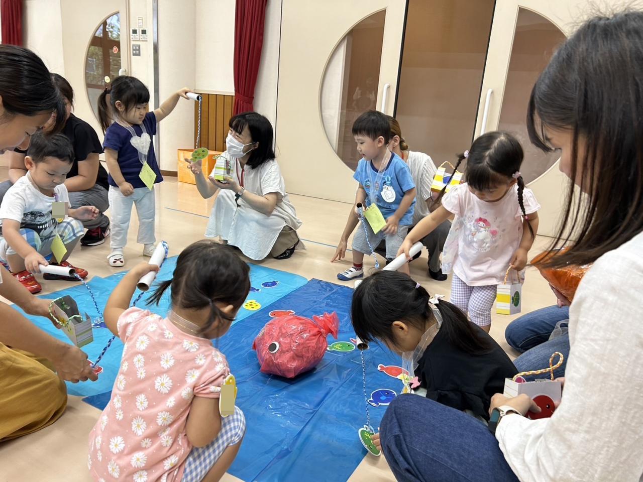 みんなの大好きな体操を踊ったり、おまつりごっこで魚釣りや輪投げをしたりして、たくさんの笑顔を見ることができました。
