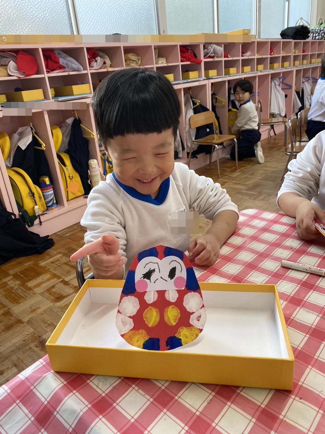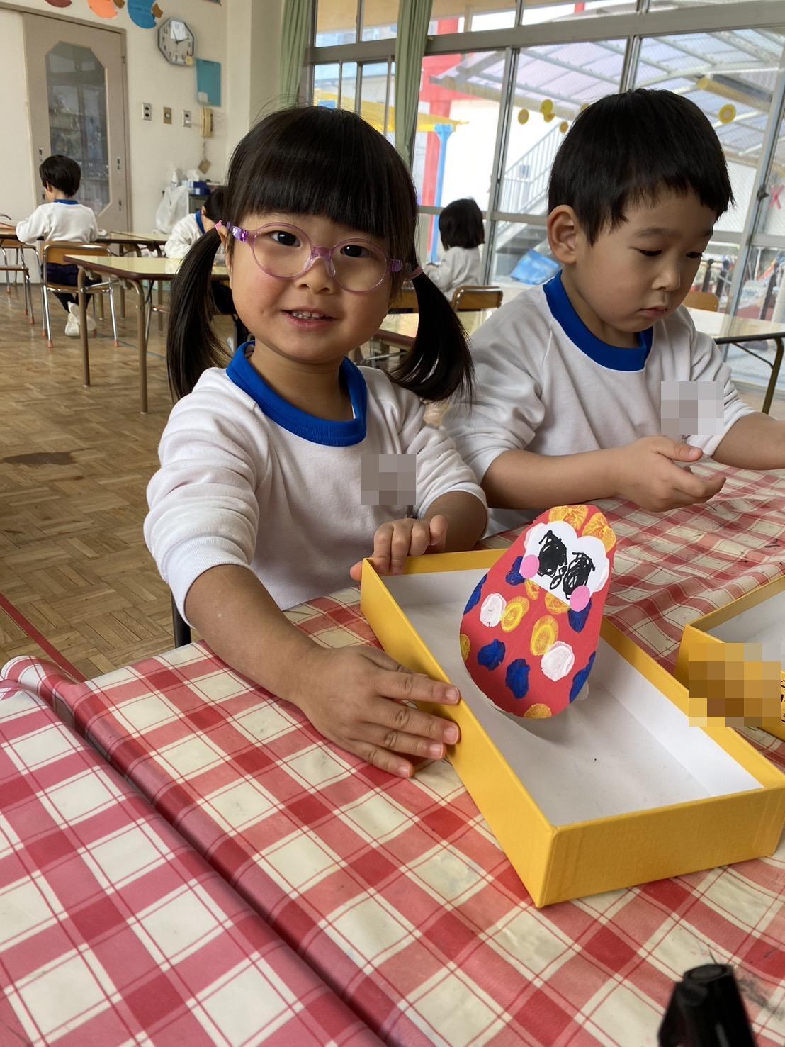 だるまさん製作をしました。かわいいだるまさんができたね!