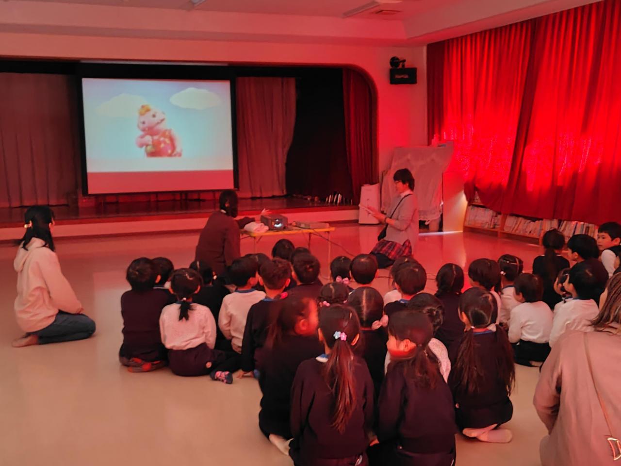 まず、子ども達にどんなことだと思うか尋ねると、「ママのお手伝いをする!」「お片付けをする!」など自分なりに考えて発表していました。園長先生は、「いろいろなことがあるね、良いことを自分で考えて、進んでしてくださいね。」とお話してくださいました。