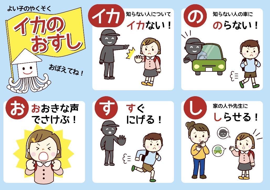 ざわざわ森のがんこちゃんの「こんなときどうする?」の防犯映画を観ました。防犯やくそく合いことばは、「いかのおすし」です。