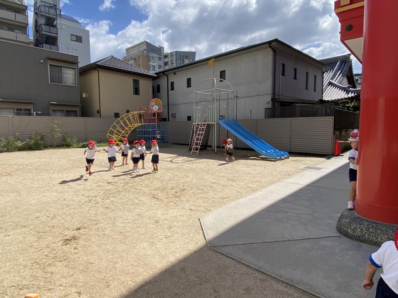久しぶりの外遊びでは、「だるまさんがころんだ」などのルールのある遊びをしたり、