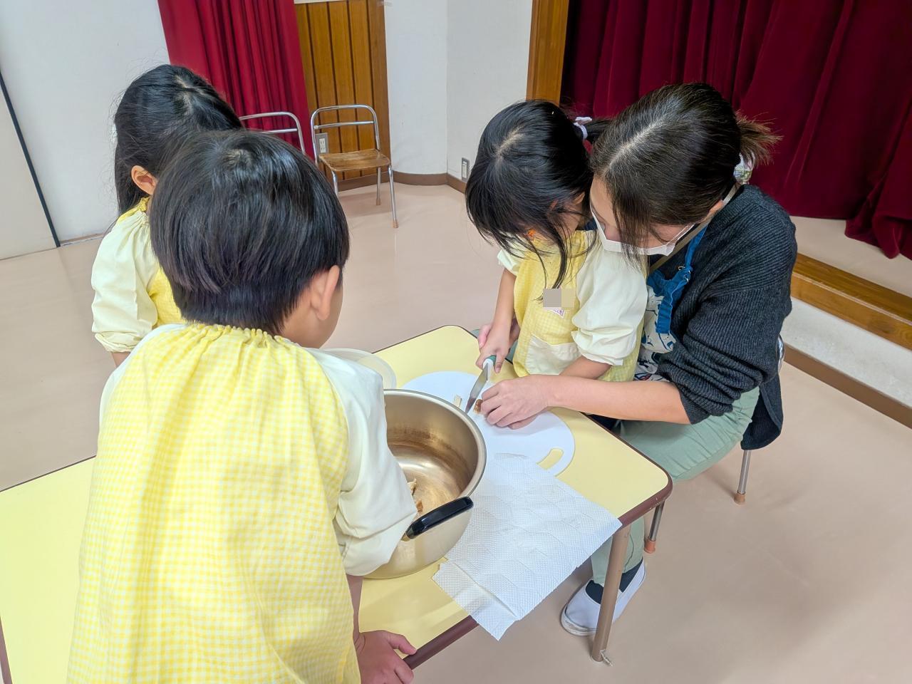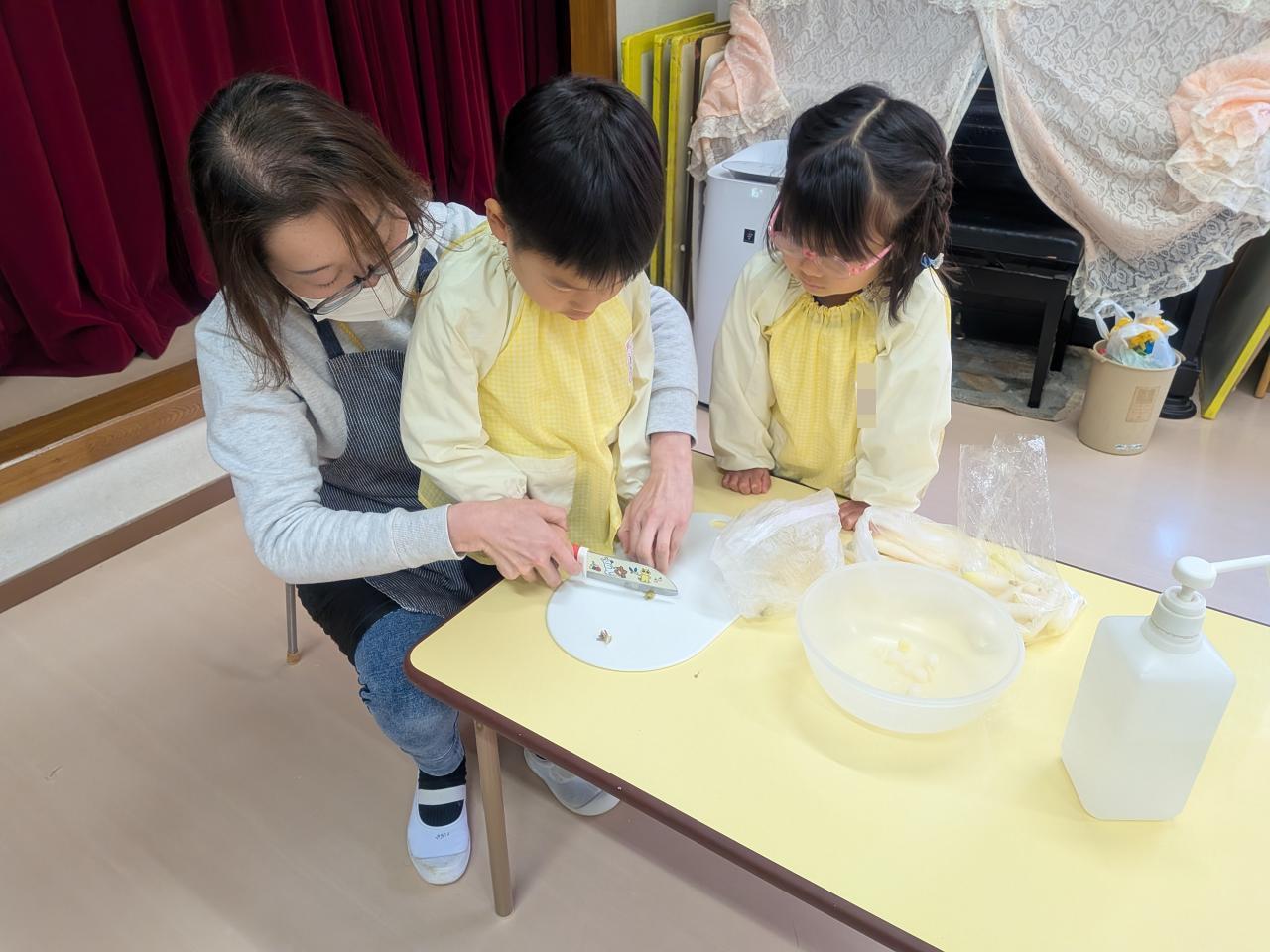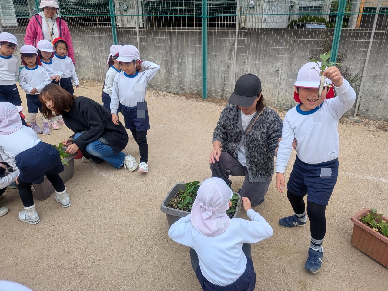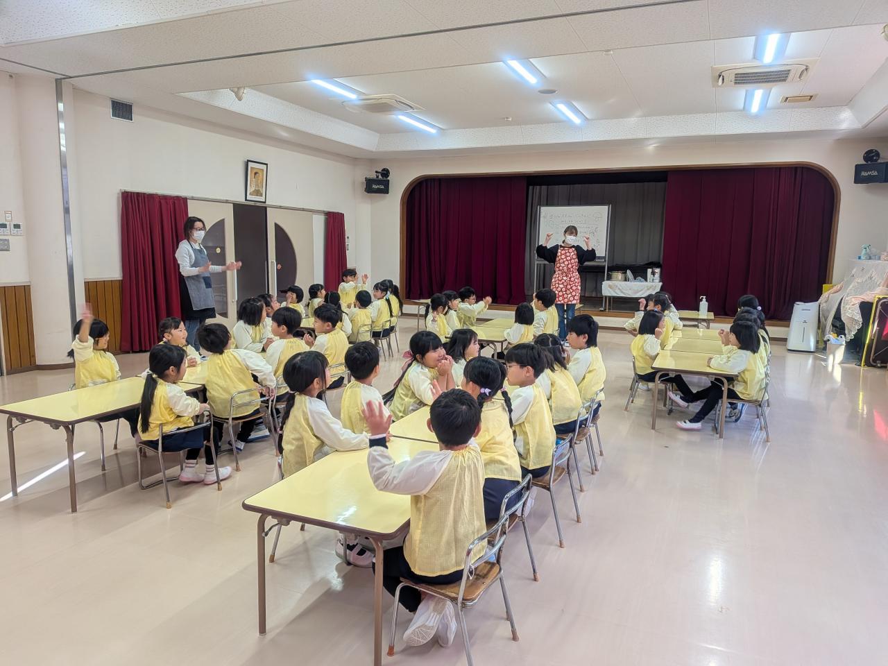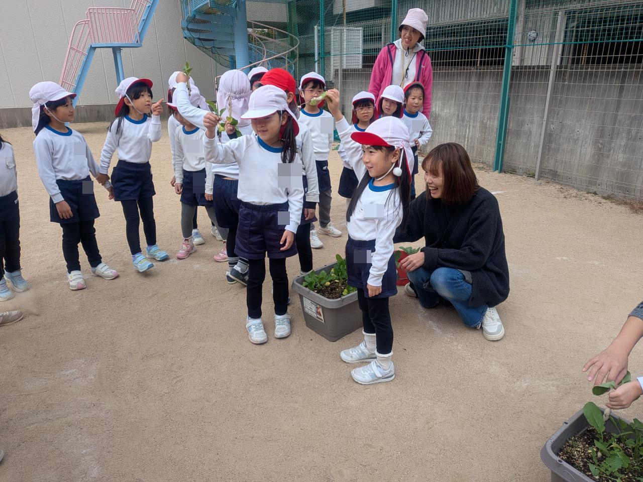 先日、年長・年中組さん一緒に「きのこ汁」を作りました!自分たちで育てた野菜を収穫したり材料を切ったりして頑張って作りました!野菜が苦手な子も「おいしい~!」「おかわり~!」と嬉しそうに食べていました😄とても良い経験になりましたね🎵