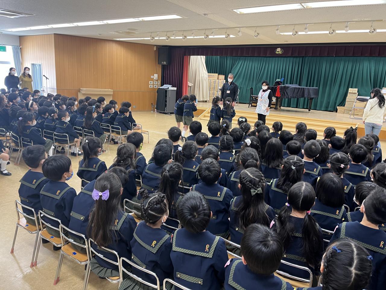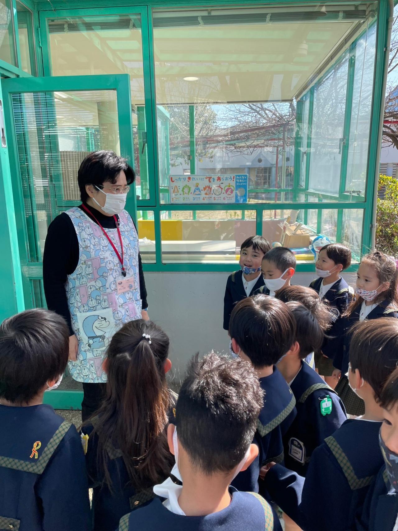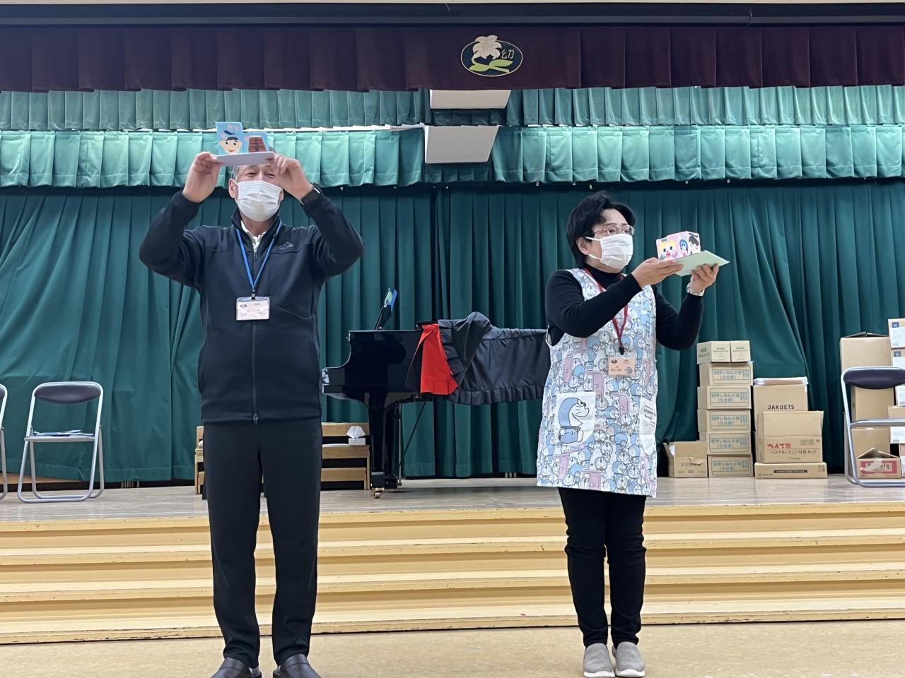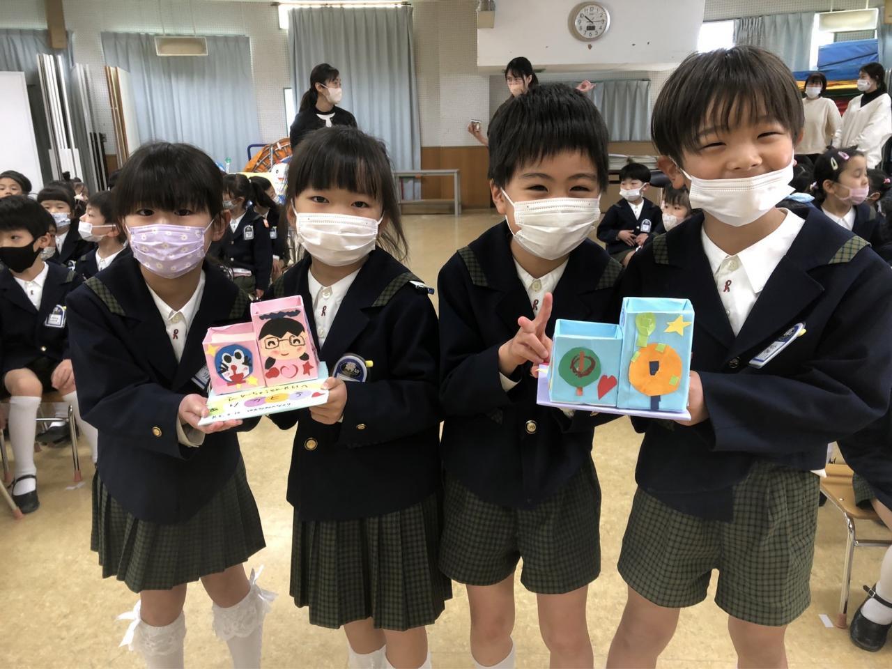 講堂で卒園式練習をする前に、園長先生と首藤先生にお礼のプレゼントを渡しました☺️