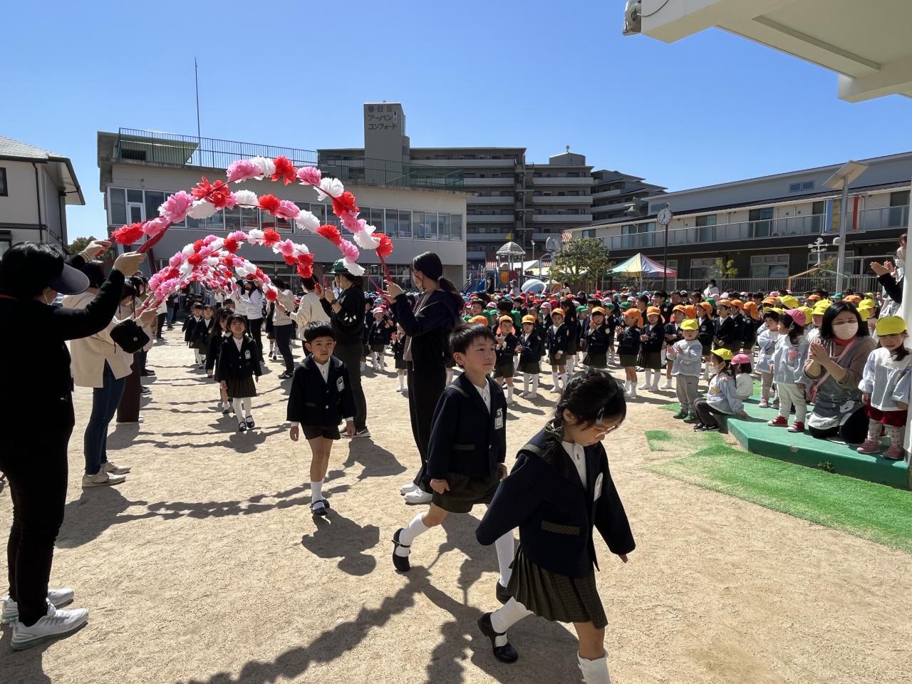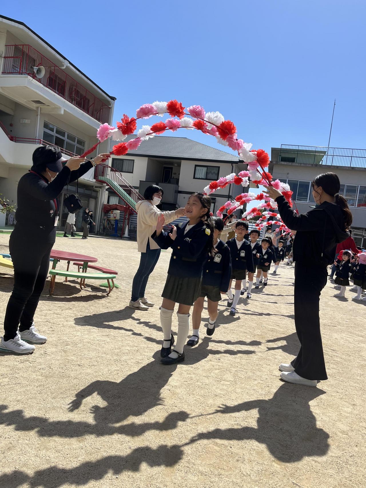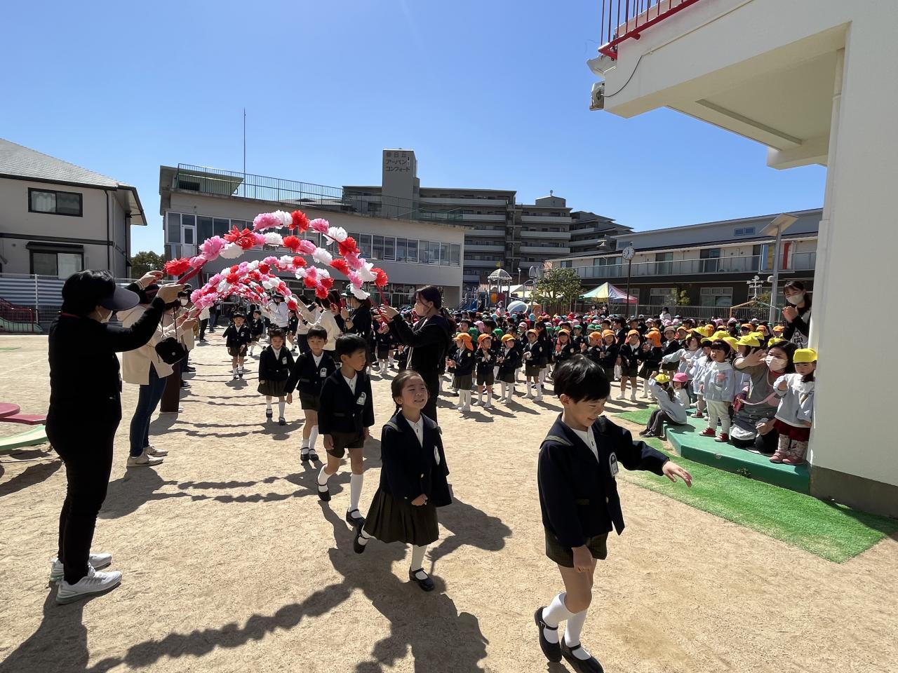 卒園式の練習が終わり退場すると、運動場に年少年中のおともたちが待っていてくれて、お別れ会をしてくれました☺️✨
