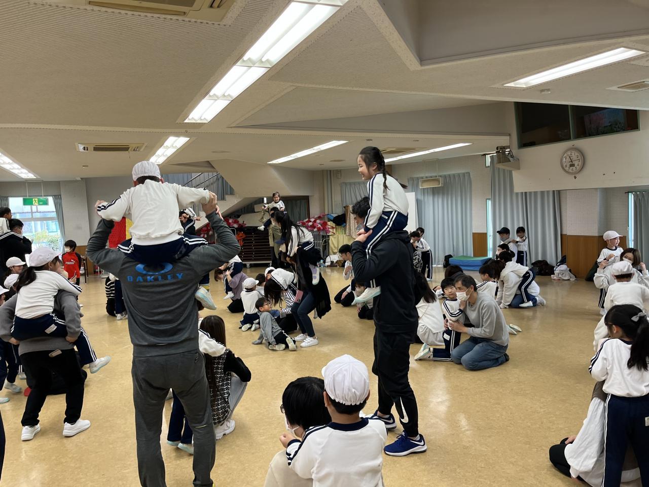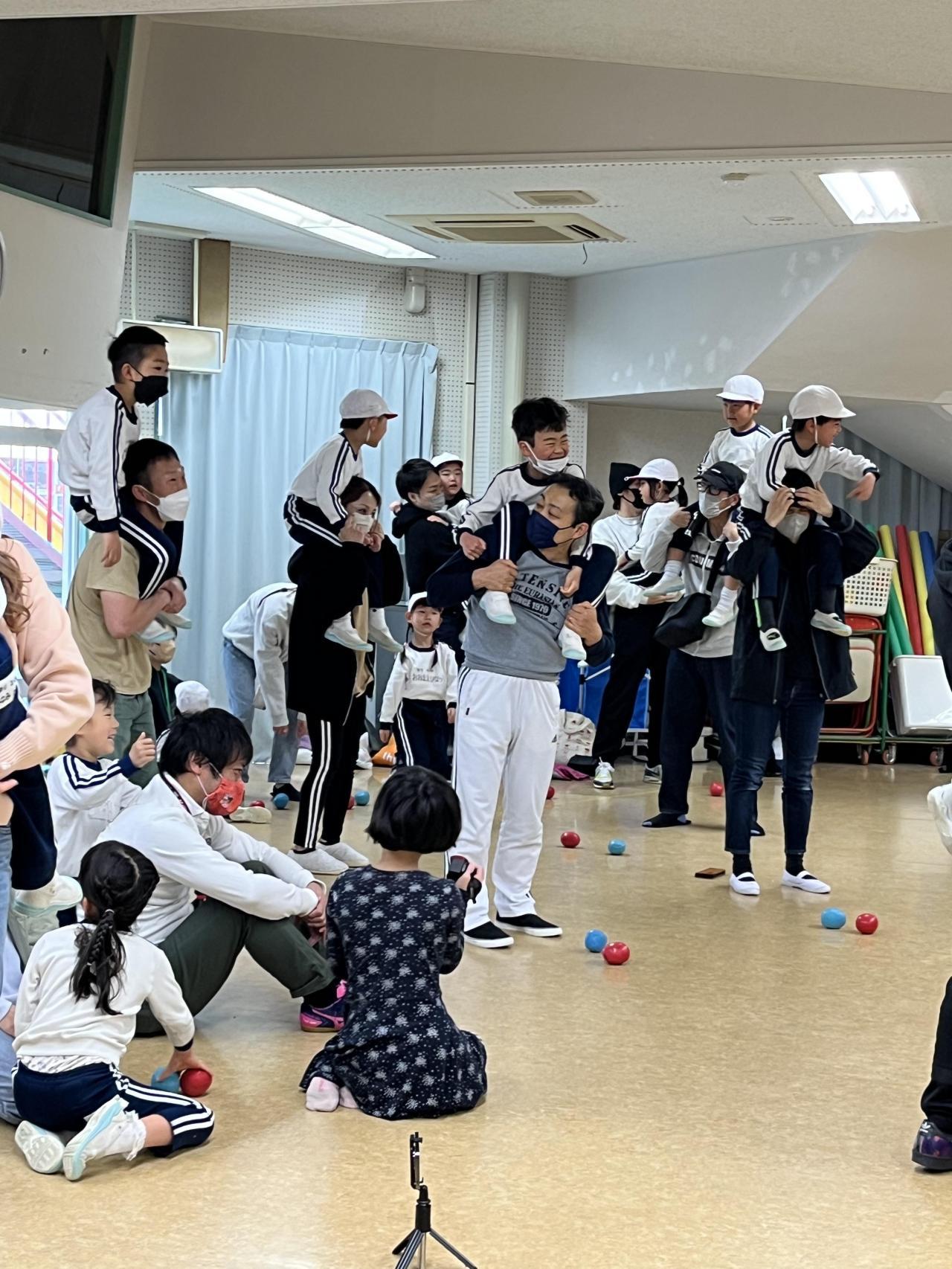 3つのチームに分かれて、玉入れや、ケンケンリレー、フープ繋ぎ、大人を飛び越えろリレー、巴鬼、、、と、競技も沢山!✨