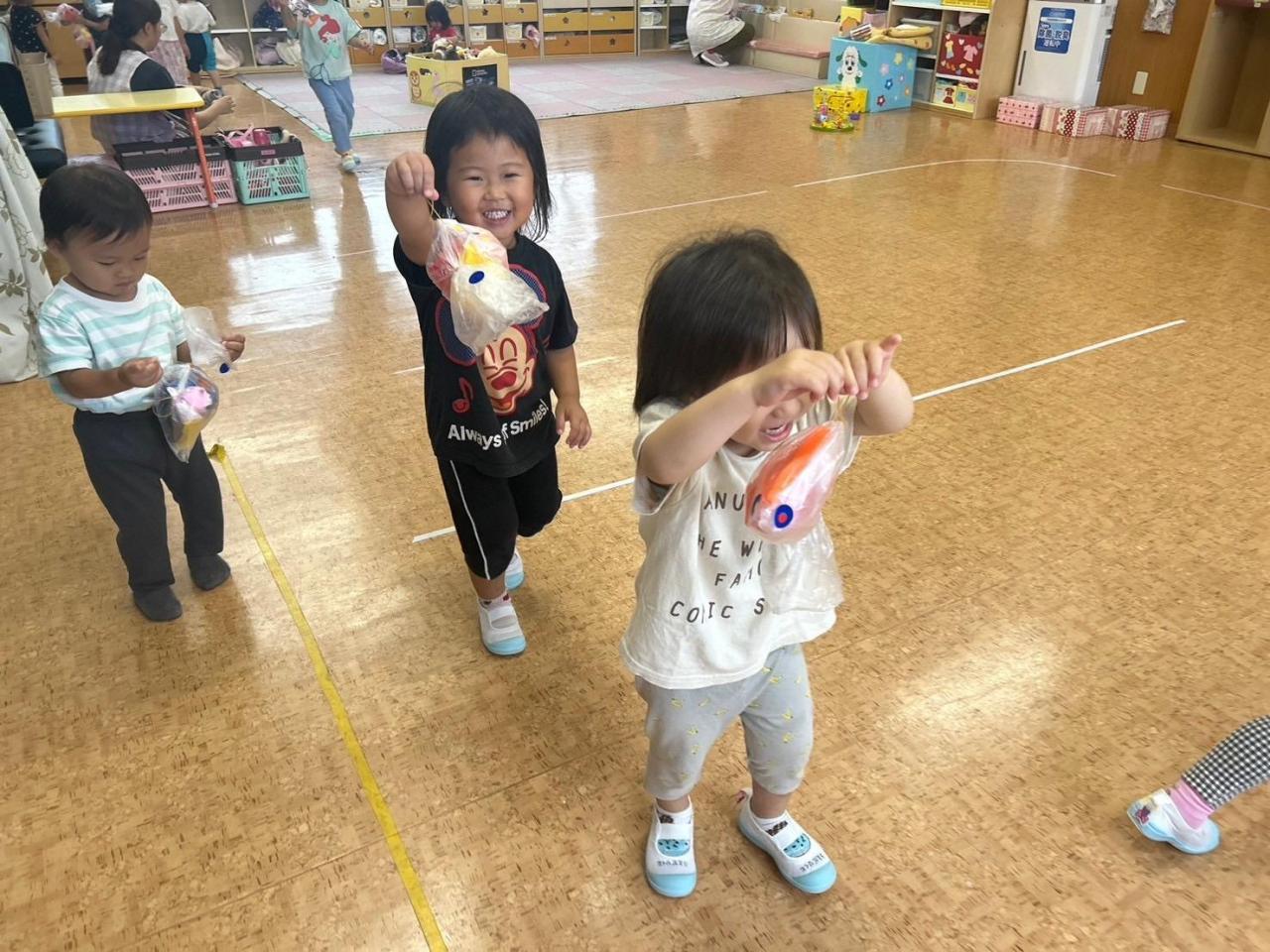 水遊びを目一杯楽しんだもみじ組さんの夏も、少しずつ秋へと変わろうとしています。来週からは9月。新学期が始まりますね。