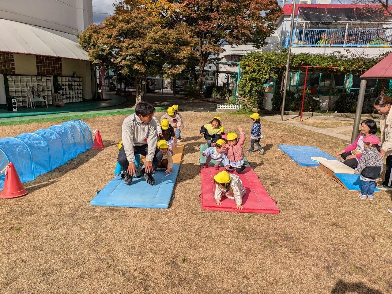 ぽっぽ先生に体育遊びもしていただきましたよ。