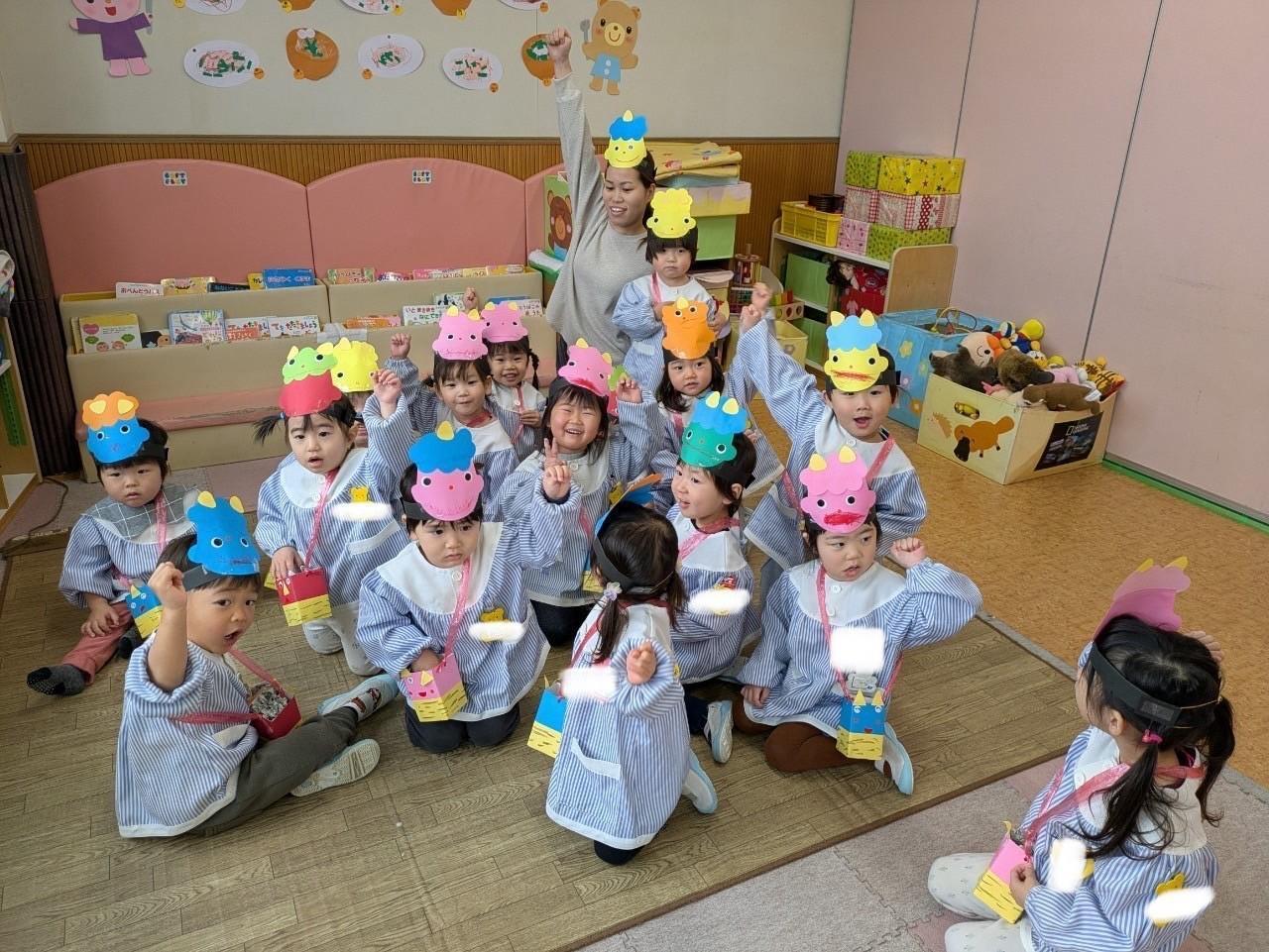 子ども達は、鬼さんやっつけるぞー!と意気込みばっちり!