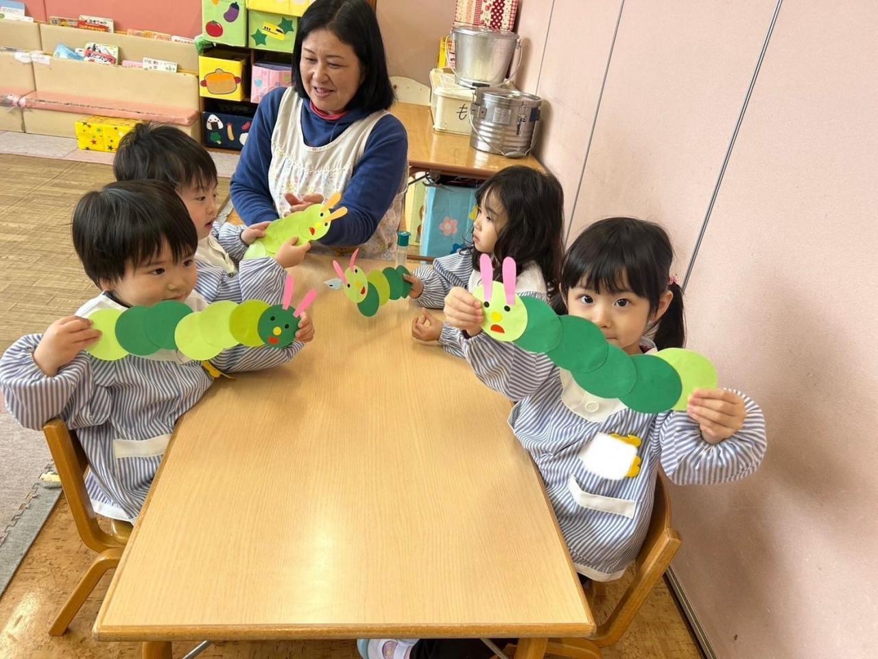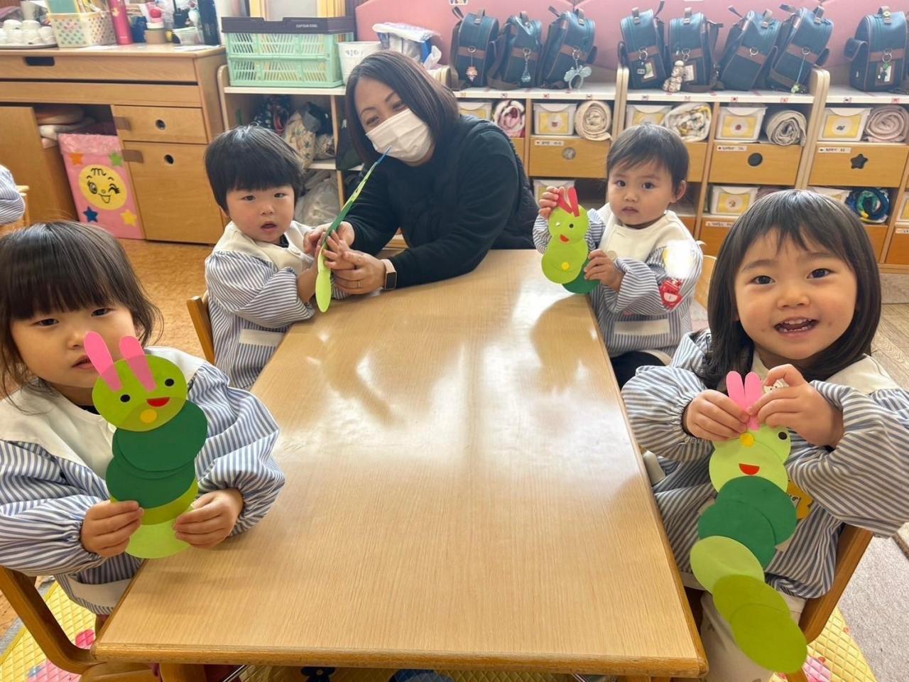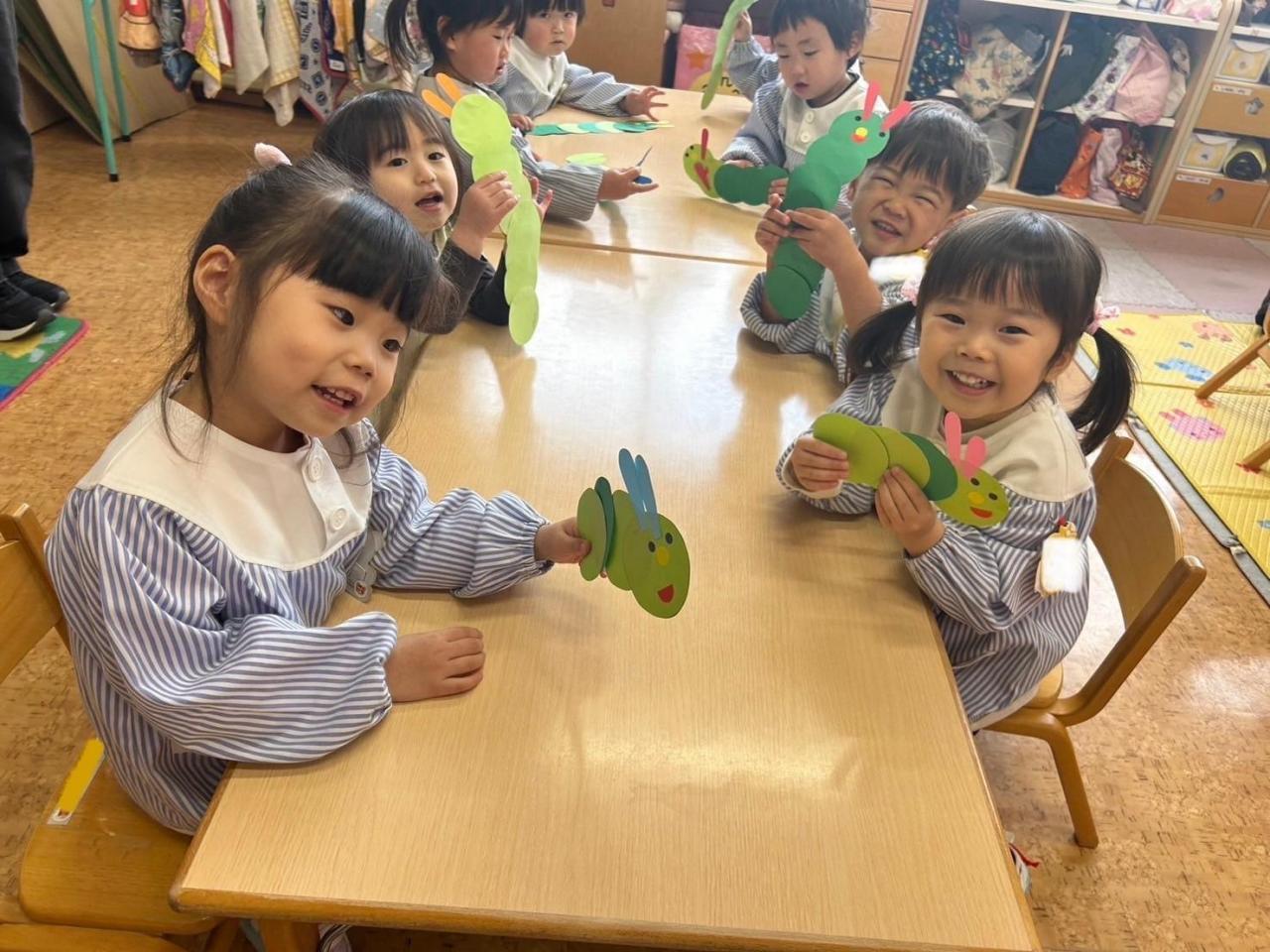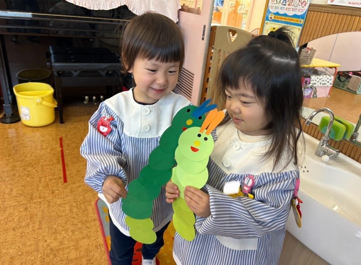 〝はらぺこあおむし”の絵本を読んで、みんなもあおむしを作りました🎵