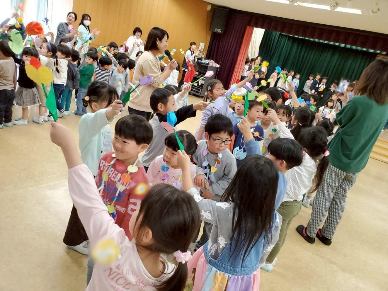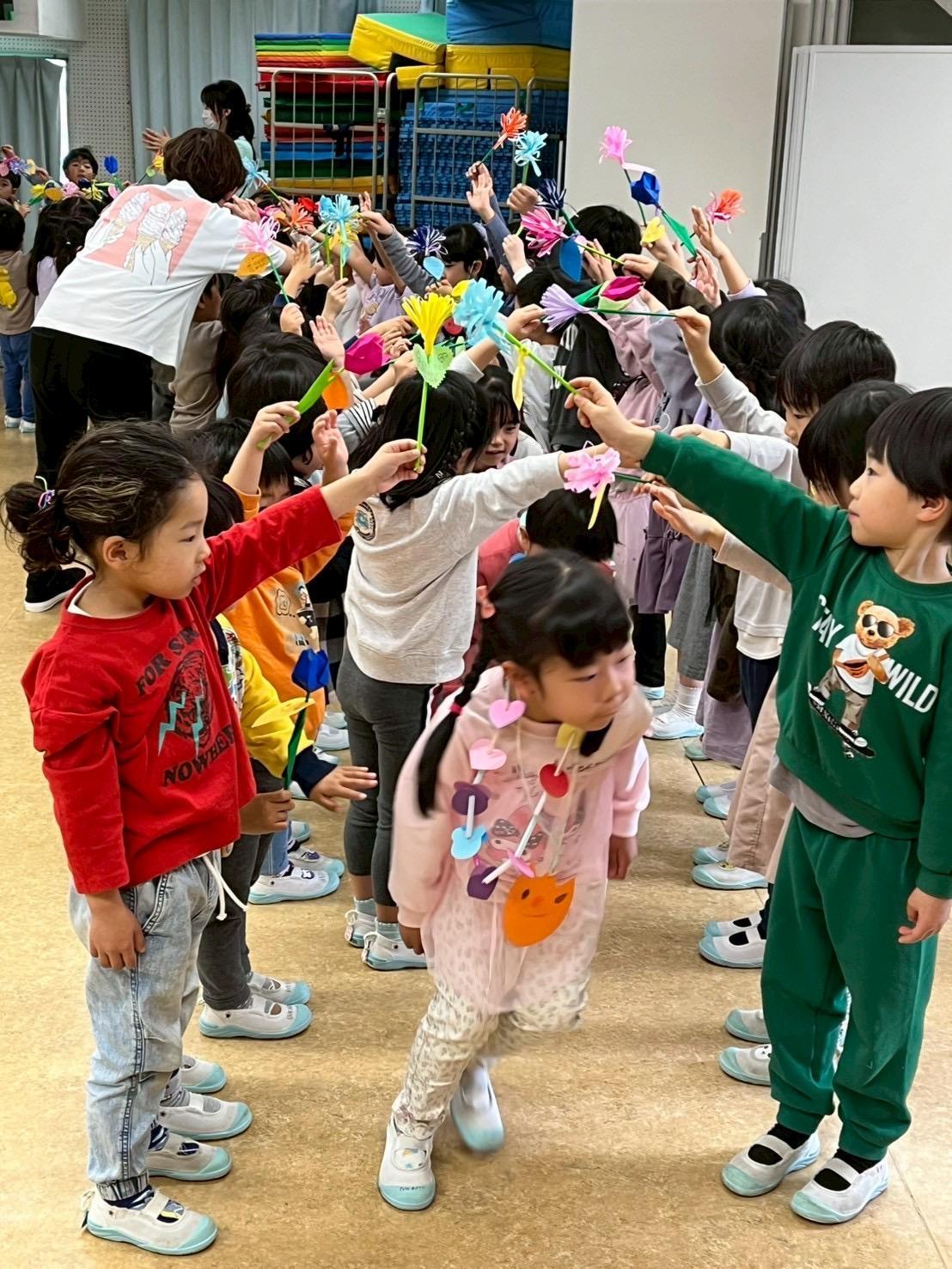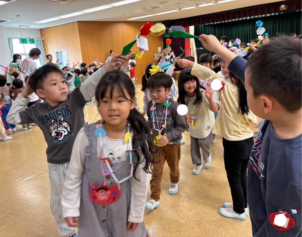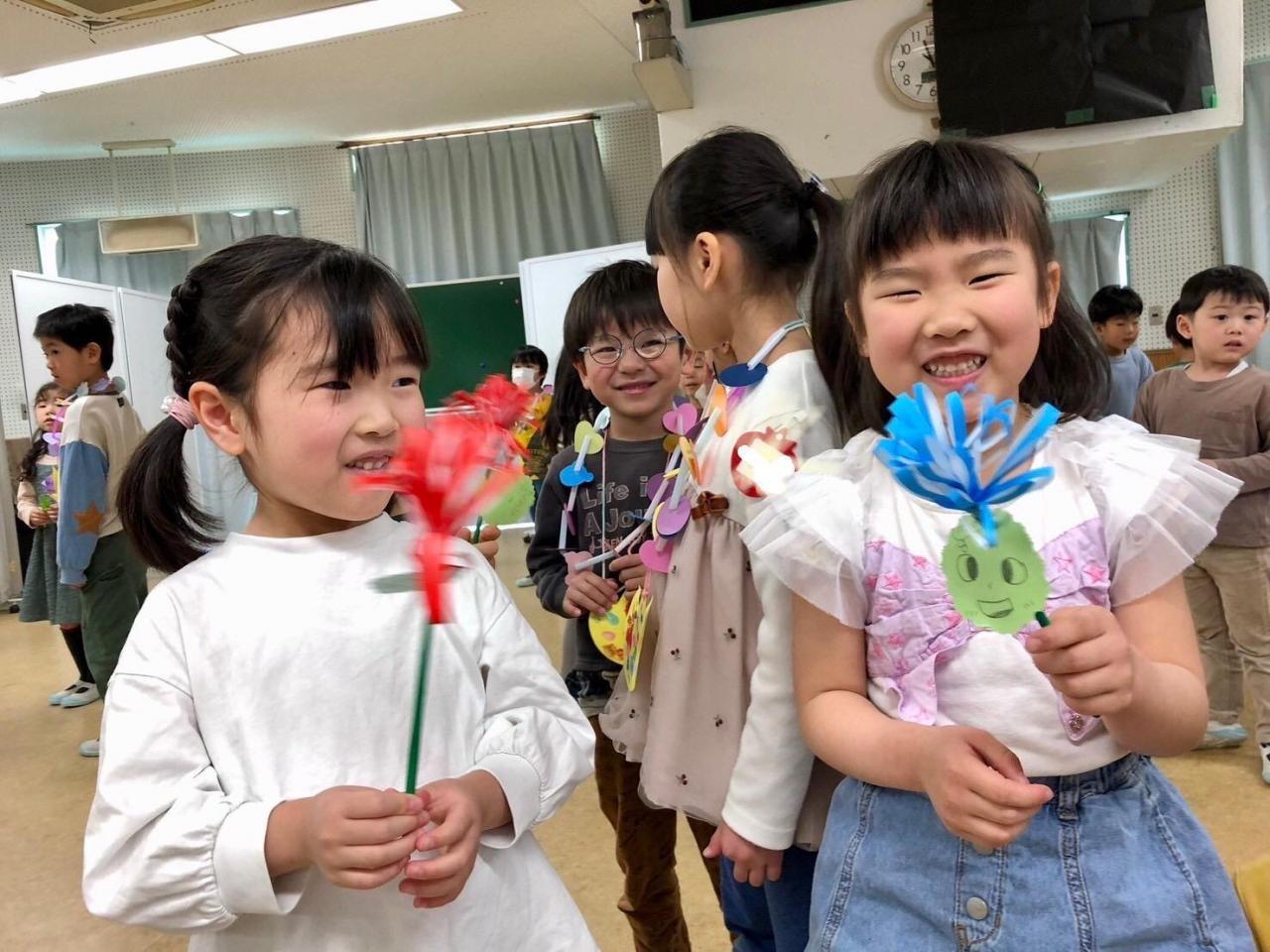 ばら組、ちゅうりっぷ組からはネックレス、ペンダント、ゆり組からは折り紙のお花のプレゼントを渡しました🎁心のこもったプレゼントをもらって「嬉しい💓」とたくさんの笑顔が見られました!