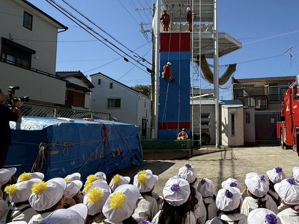最後にはレスキュー隊の訓練も見せていただき、「かっこいい!」「すごい!」と興味津々でした!