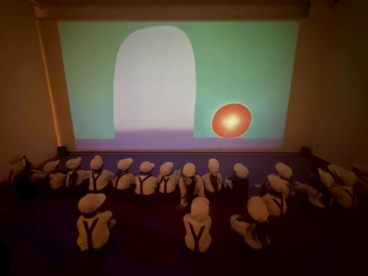 白ゆり幼稚園が題材になっている中辻悦子さんが描かれた「よるのようちえん」も展示されており、「白ゆり幼稚園の絵本だー!」ととても嬉しそうでした☺️🤍