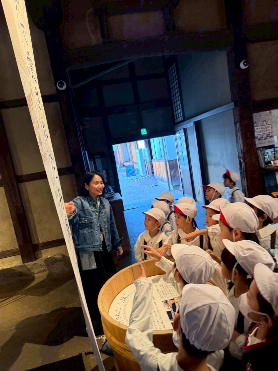 同じ敷地内にある旧岡田邸の酒蔵も見学させていただき、昔の日本文化に触れることができました。職員の方がとても分かりやすい言葉で教えてくださり、子どもたちも「へぇー!そうなんだ!」とたくさん学べたようでした😌