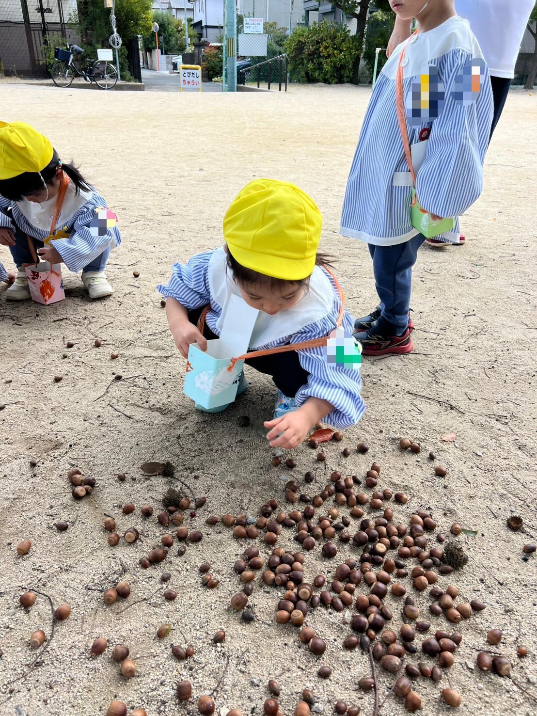 たくさんのどんぐりに大喜びな