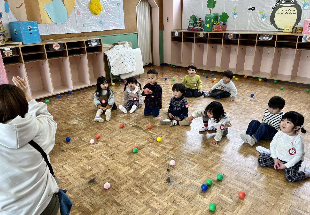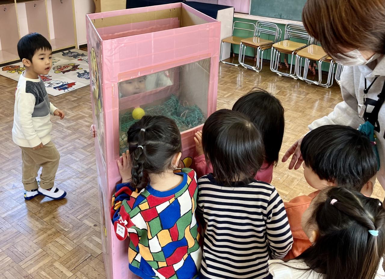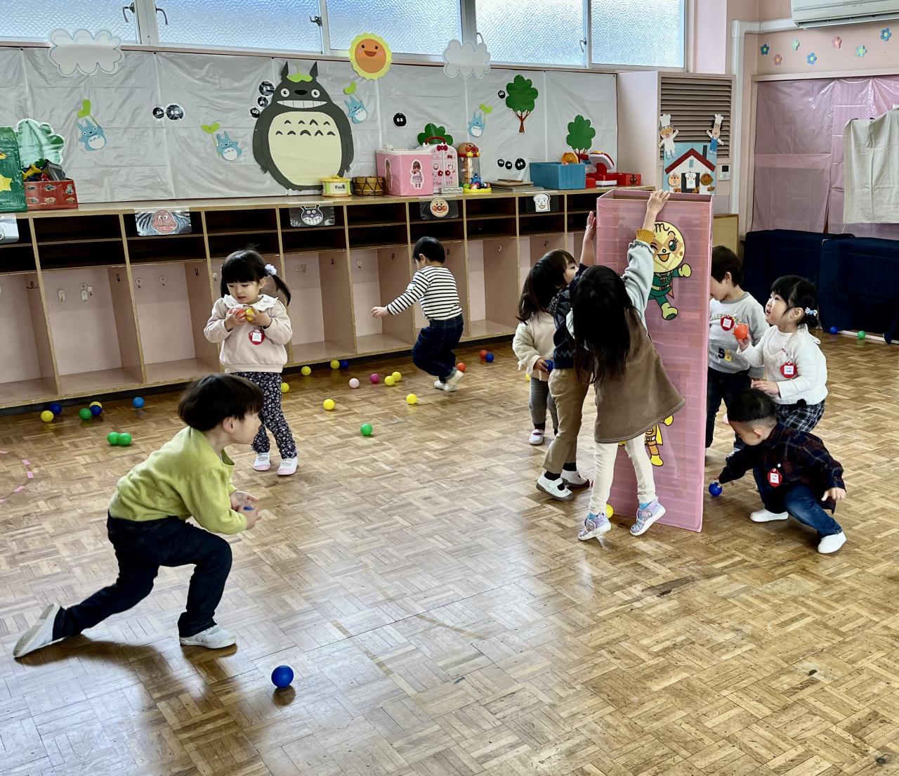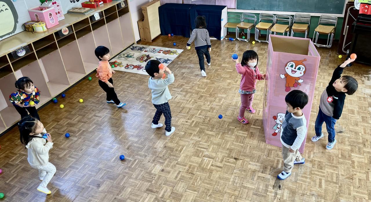 アンパンマンたちのお家と称して、屋根にボールをいっぱい入れよう!と話したら