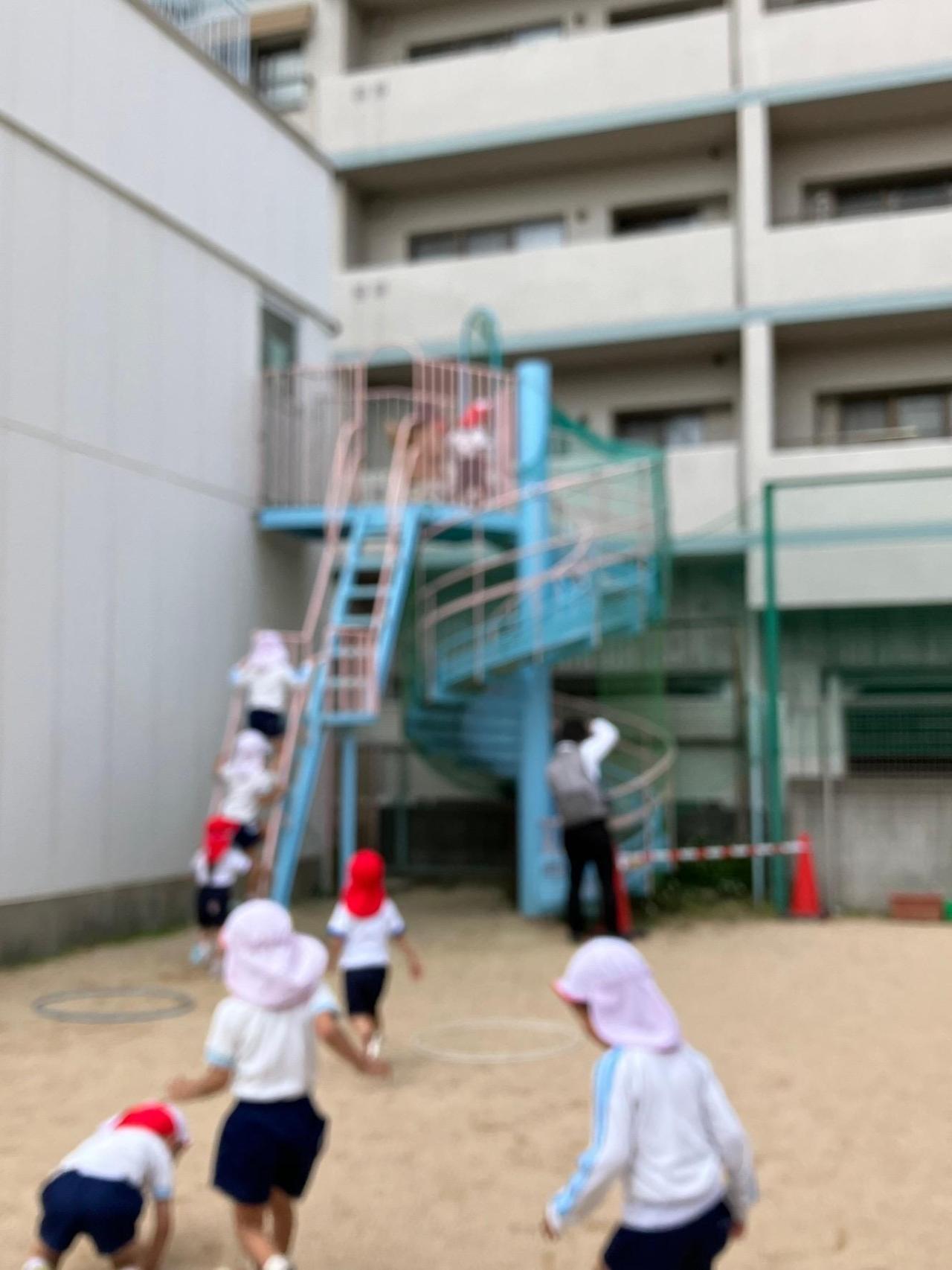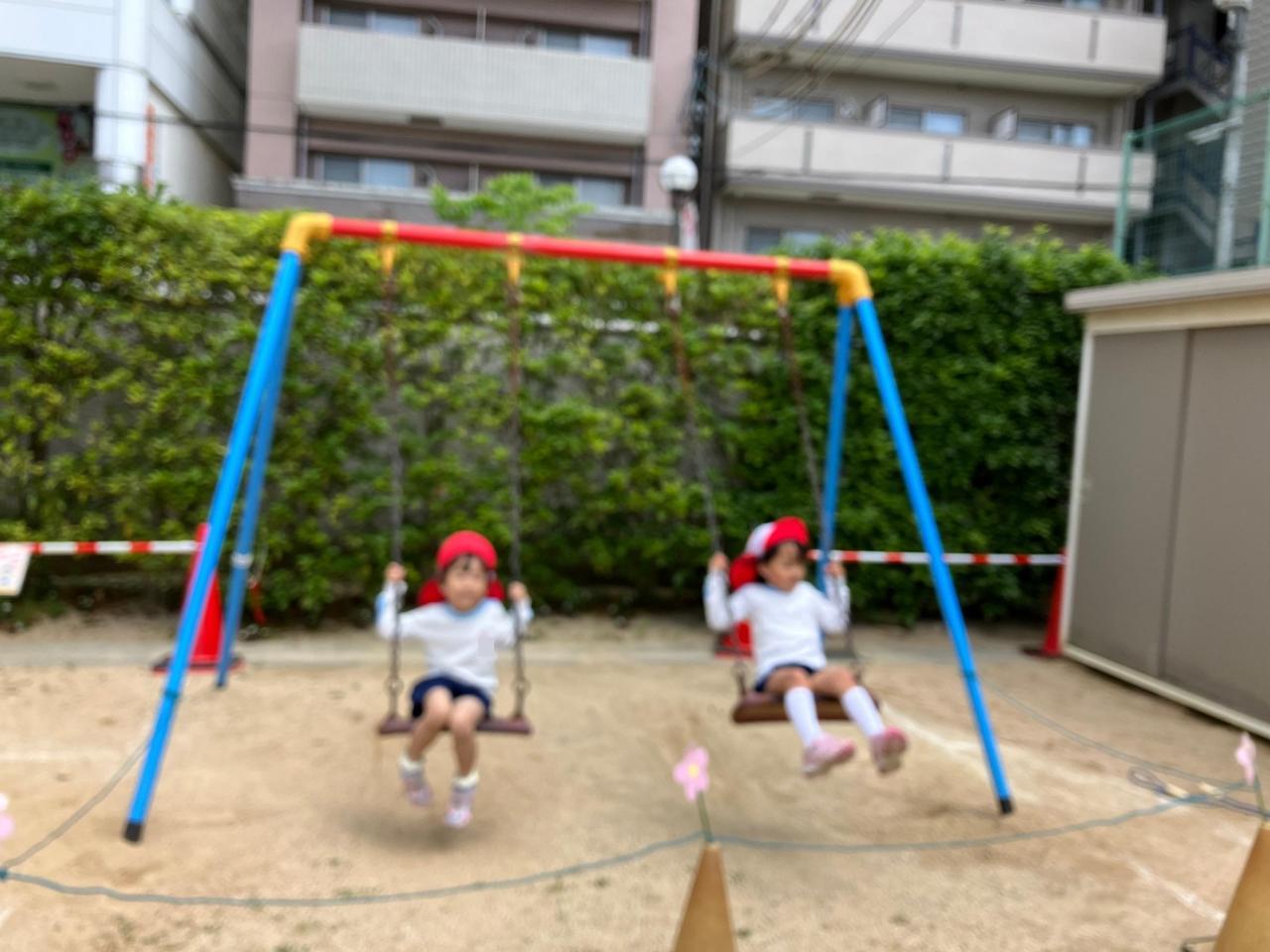 そのあと美味しいおにぎりを食べて、月影幼稚園の園庭で遊びました。月影幼稚園のお友達がたくさん手を振ってくれて喜んでました!!