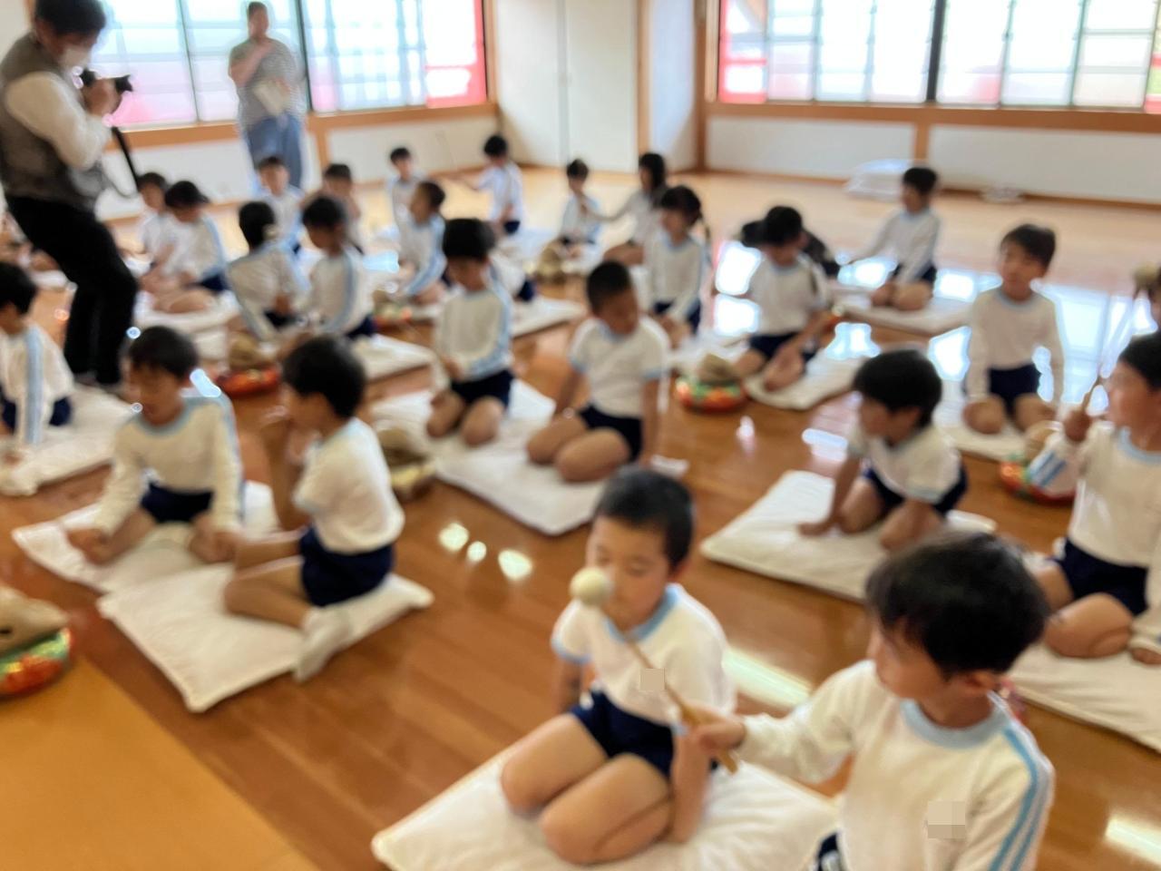 園長先生と三木先生のお経に合わせて木魚をたたきました。なかなか普段ではできない体験ができてよかったですね!!