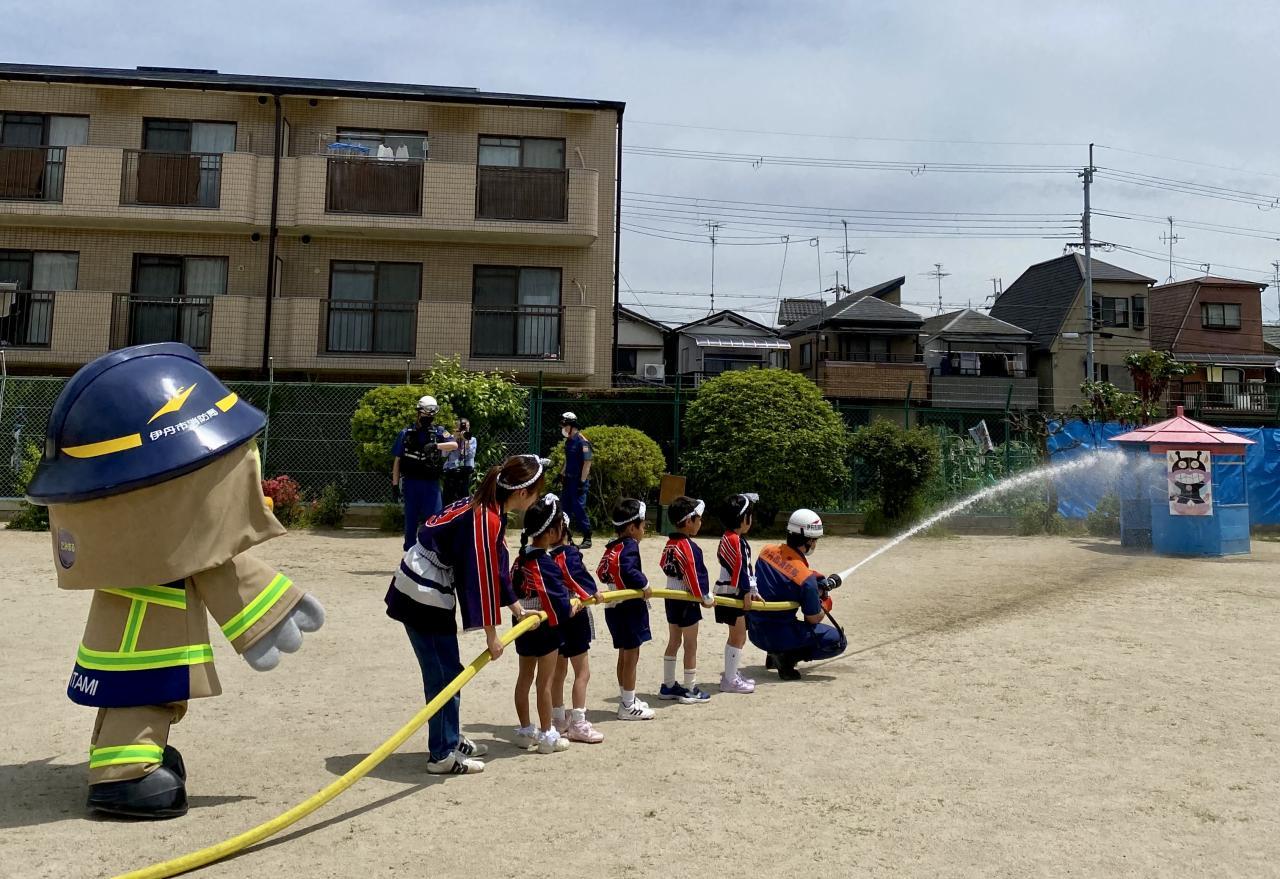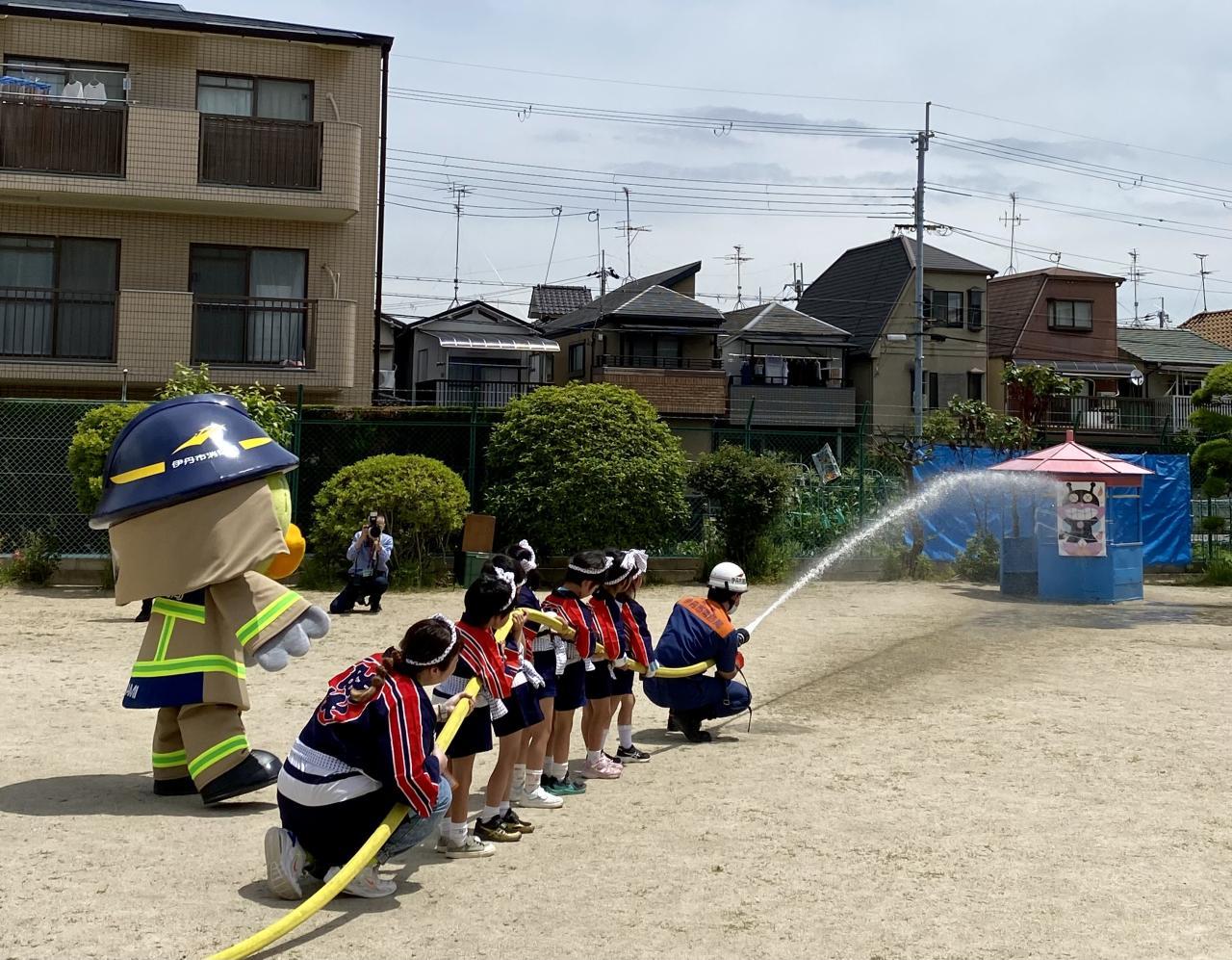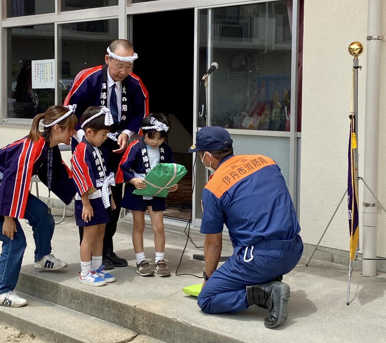 嬉しいプレゼントのあとには、みんなでちびっこ消防士さんに