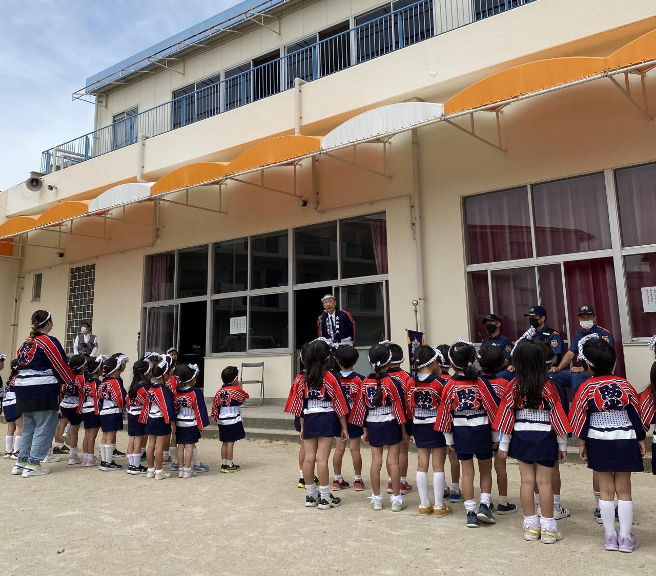 年長の子どもたちが、かっこよく行進をして園庭に登場しました。
