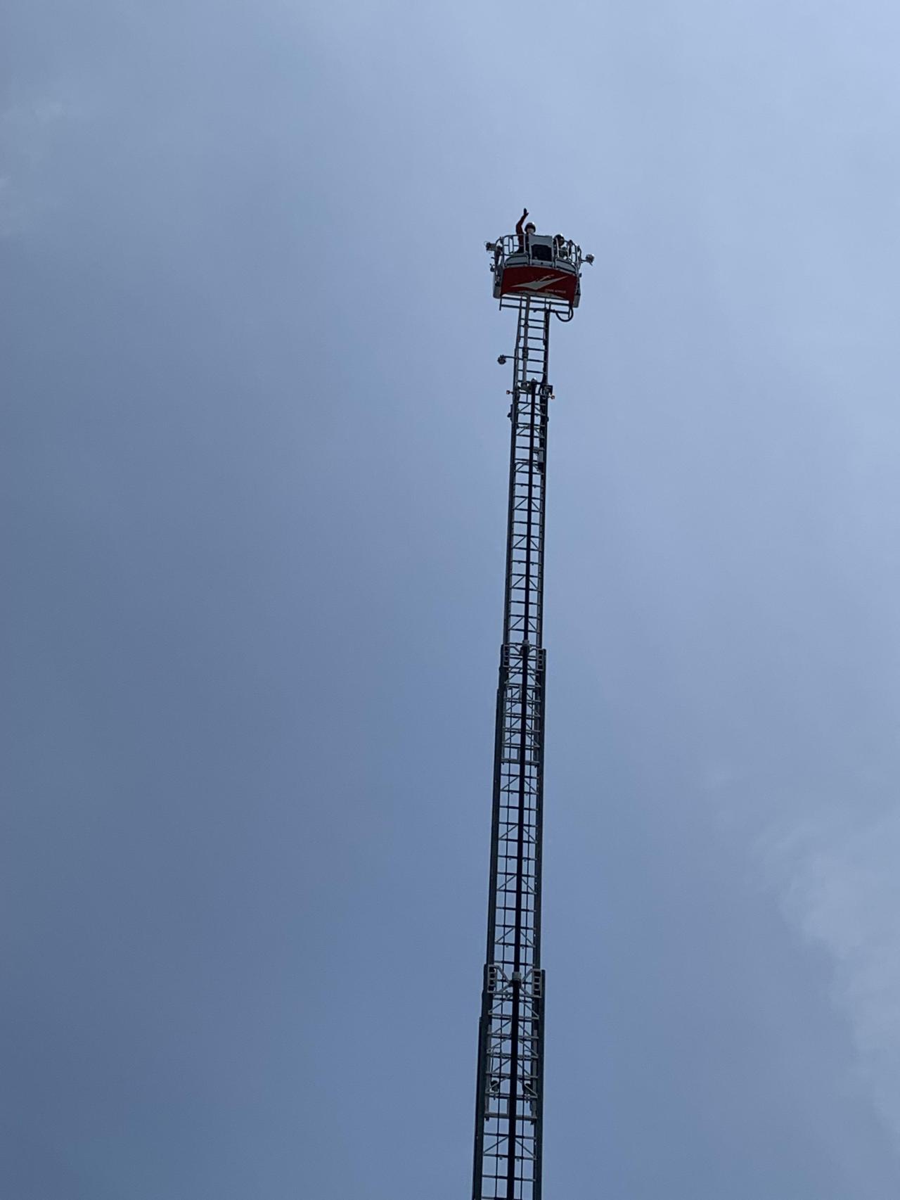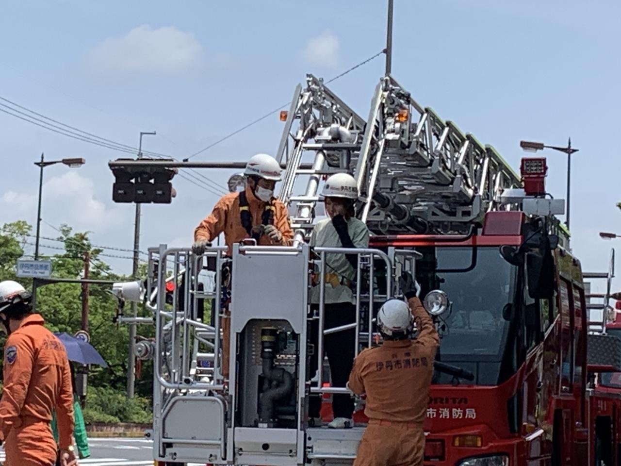 その後池田先生がはしご車にのりましたよ~!!みんなでがんばって~!!!と応援をしました🙂