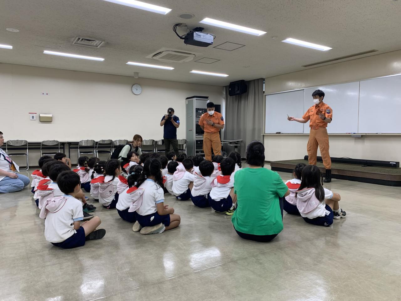 3階のお部屋で災害護身術を教えていただいた後、消防士さんに代表の子どもたちが質問をしました。ドキドキしながらも頑張ってました!!