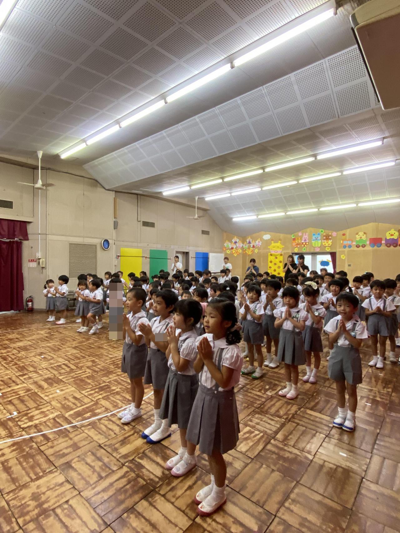 今日は、1学期最後の終業式でした🙂始業式、入園式にはドキドキ緊張した様子の子どもたちでしたが、今日はみんなニコニコの成長されたお顔で終業式に参加されていました✨