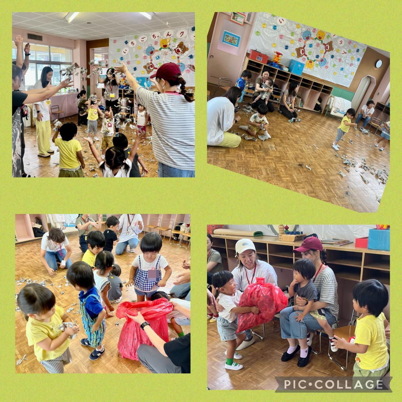 お部屋にて新聞紙あそびをしました。