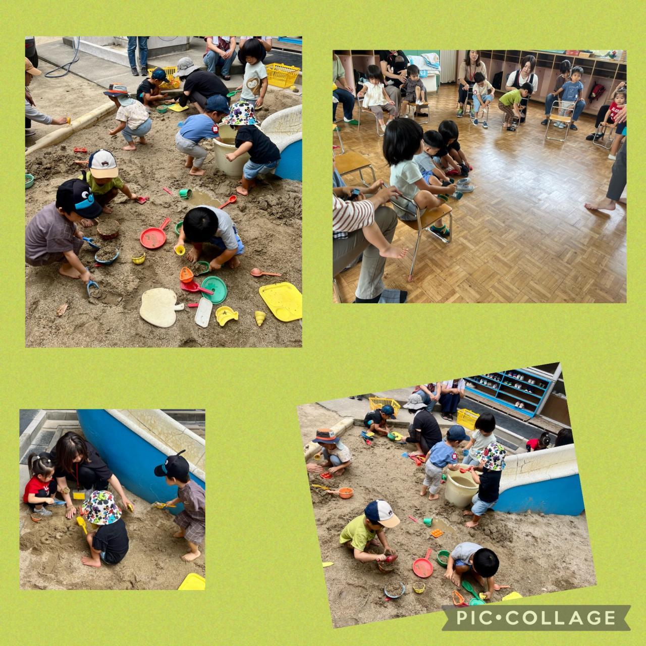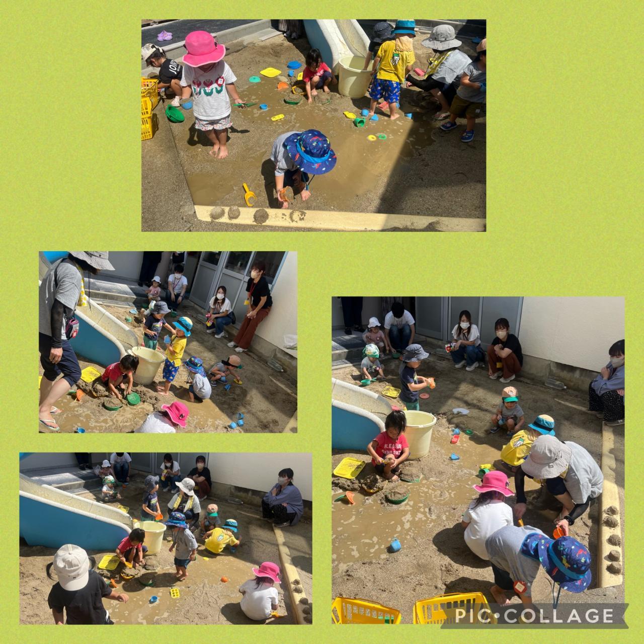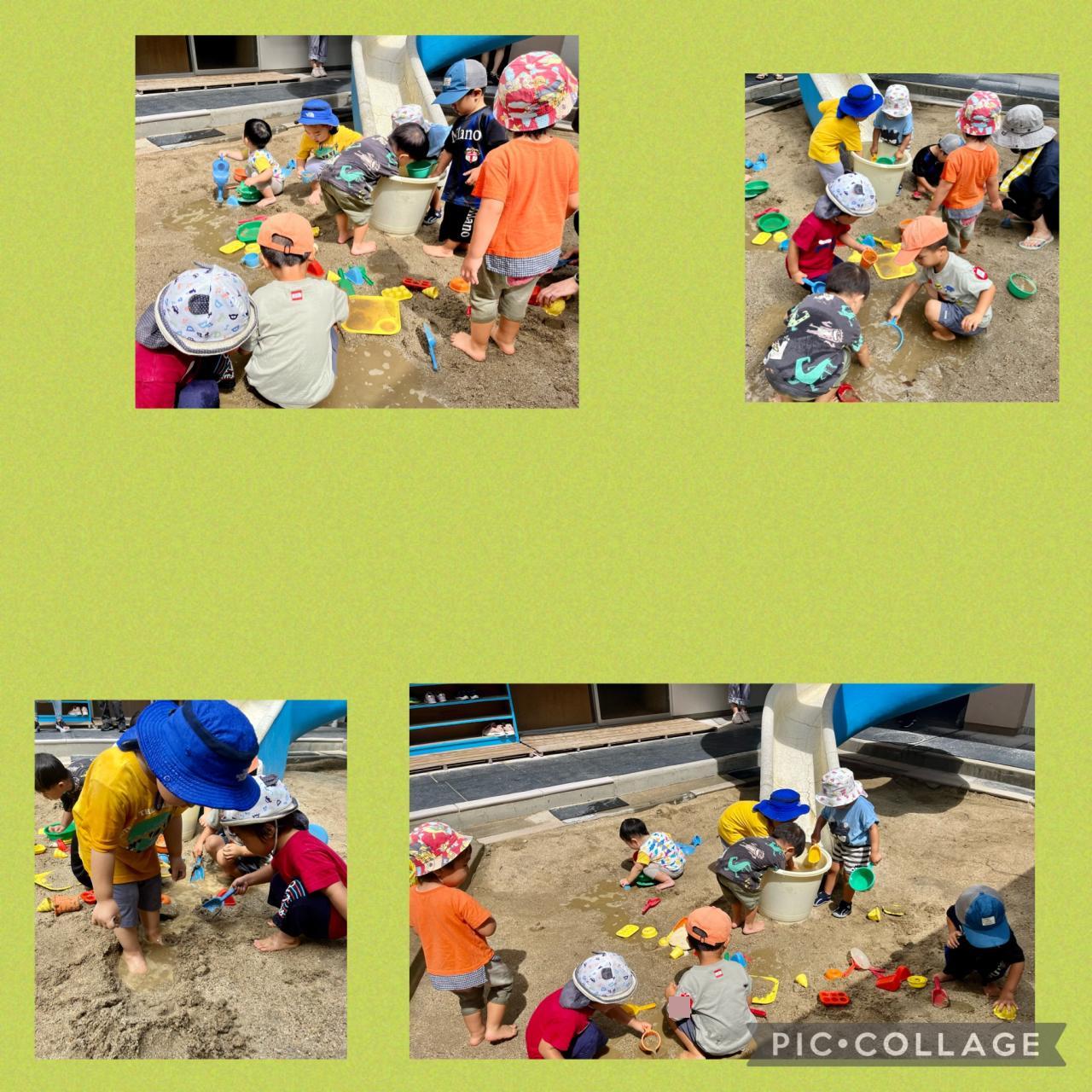 元気に登園してくれた子たちと、お水も出してお砂場で泥んこになりながら遊びました!!