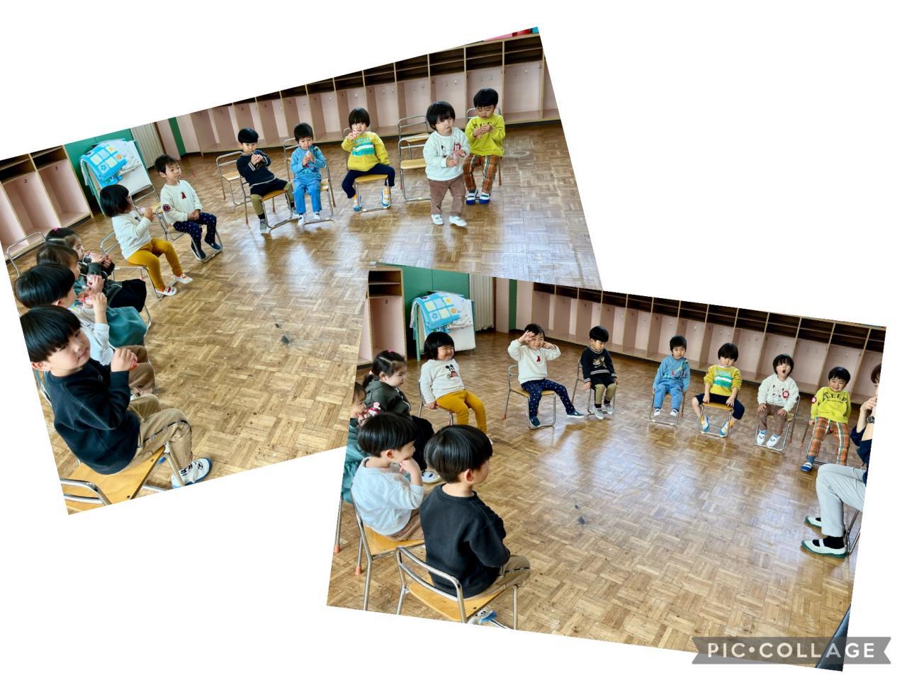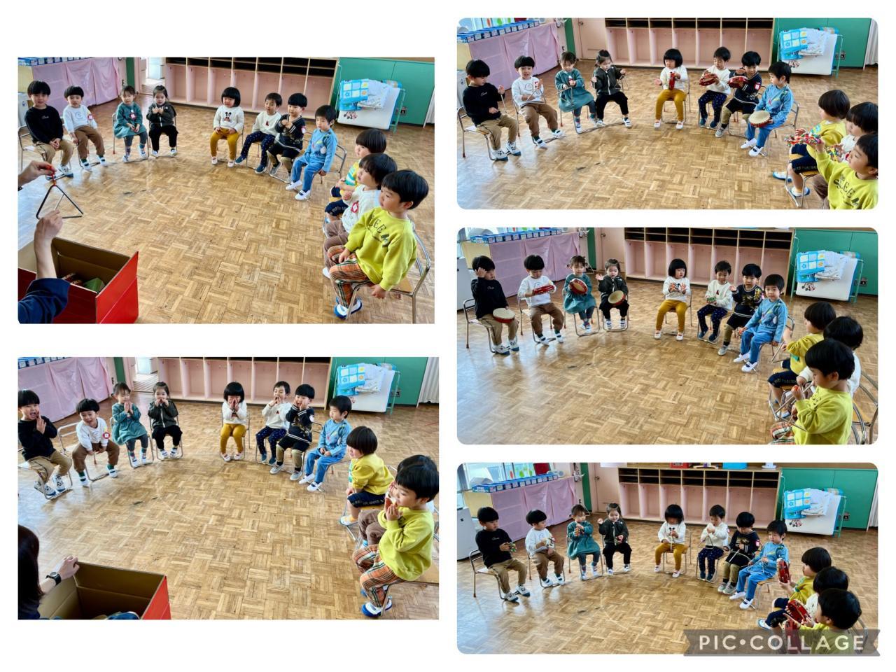 楽器遊びでは、タンバリン・すず・トライアングルと順番に全員が演奏しましたが