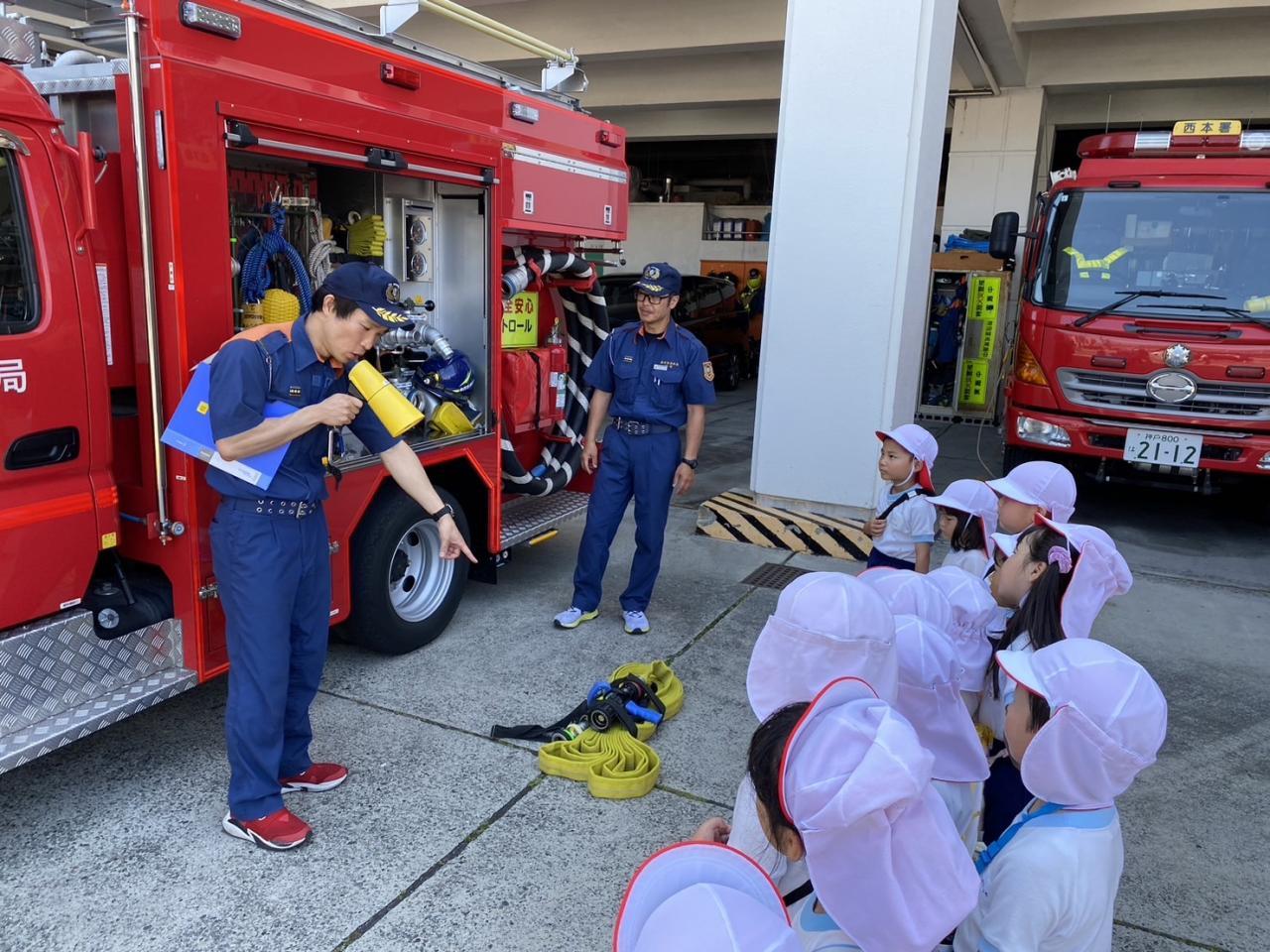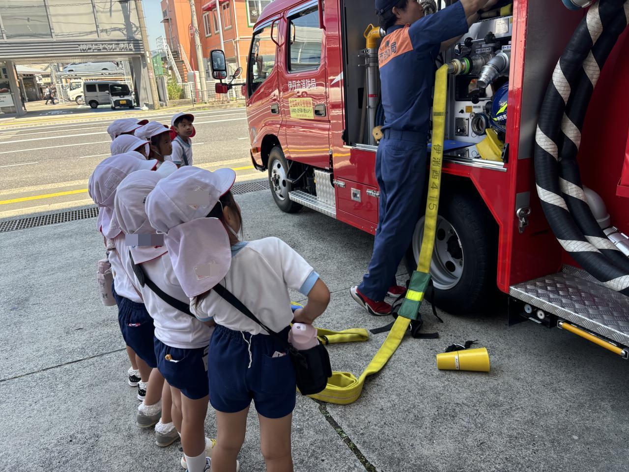 一つ一つ丁寧に教えてくださったので、子どもたちも真剣な眼差しできいてました。いろんなことを知ることができた一日でした。また、お家でもお話をしてみてくださいね🚒
