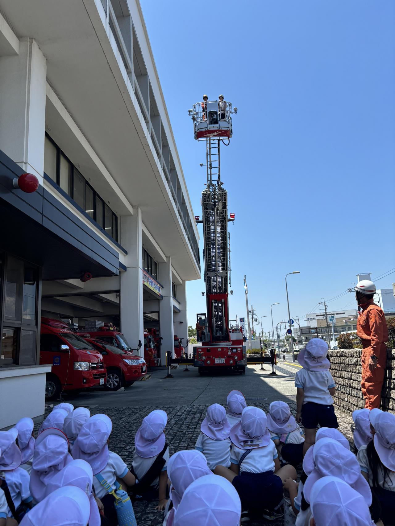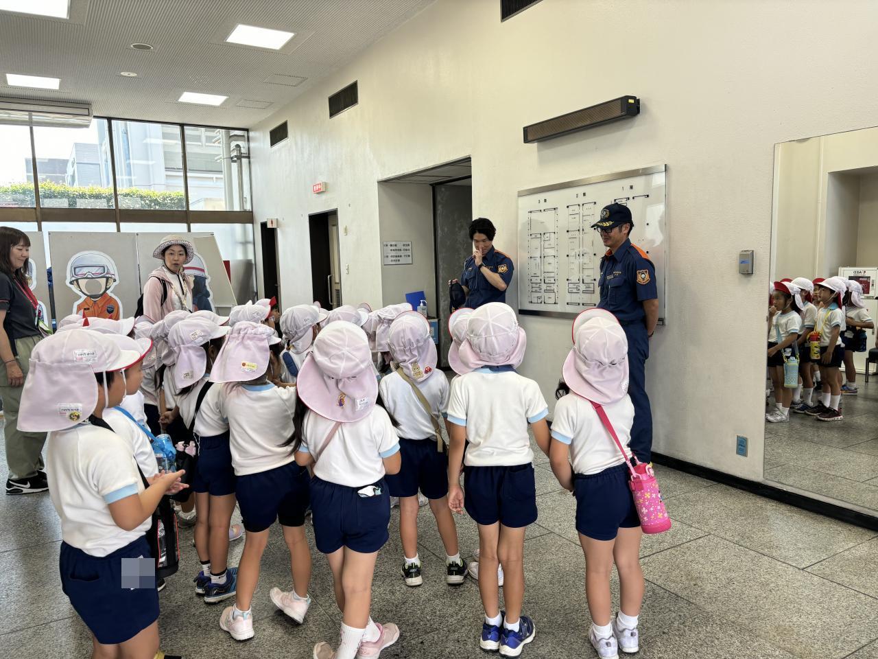 帰りは、とても暑かったので、子どもたちの様子が心配でしたが、さすが年長組!!頑張って最後まで、歩くことができました。消防署の中でもお話をしっかりと聞いたり、静かにしたりと年長児らしい姿が見れて、嬉しかったです。