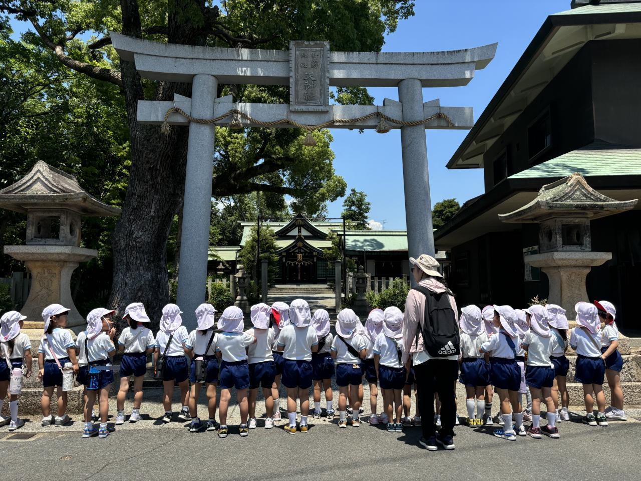 消防署に「さようなら」をしました。帰りに東天神社で無事に帰ってこれたことのお礼をしました。