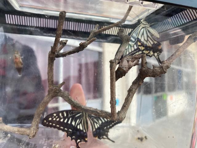 お参りの時に園長先生が見せてくださっていたちょうちょが、ついに蛹からかえってちょうちょになりました🦋