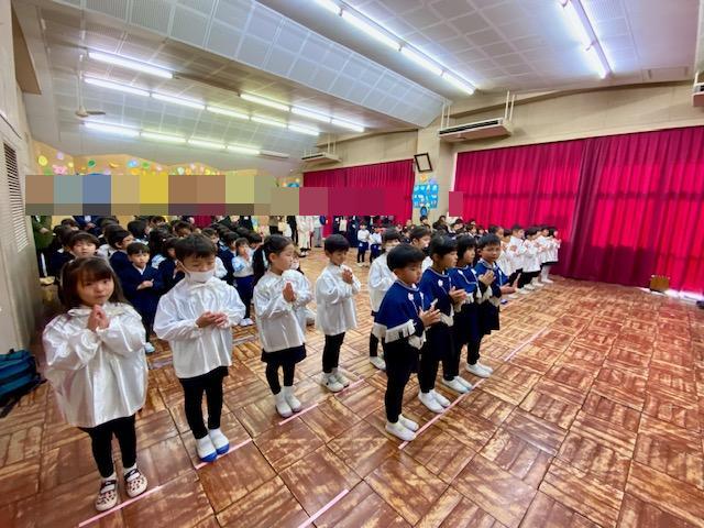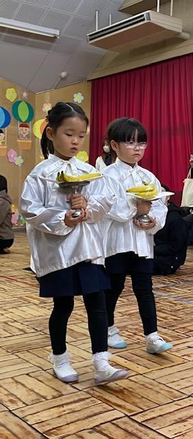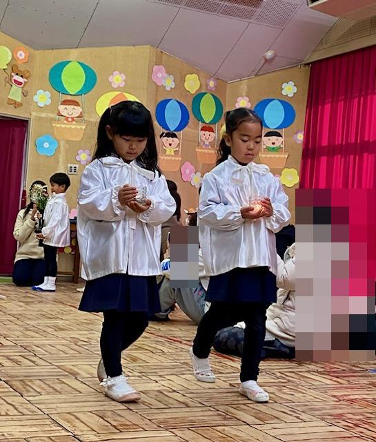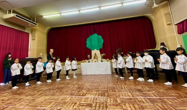 年長児が代表で献灯献花をし、4つのちかいを全園児で代表の子どもが言ってくれたあとに続きます。