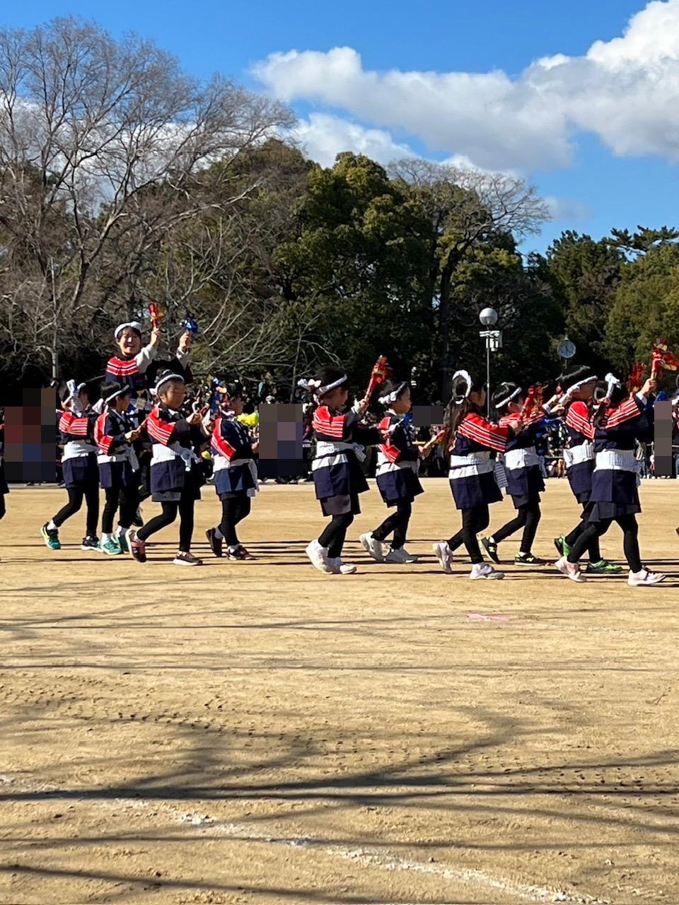 晴天の中、幼年消防クラブの一員として行進演技に参加しました!