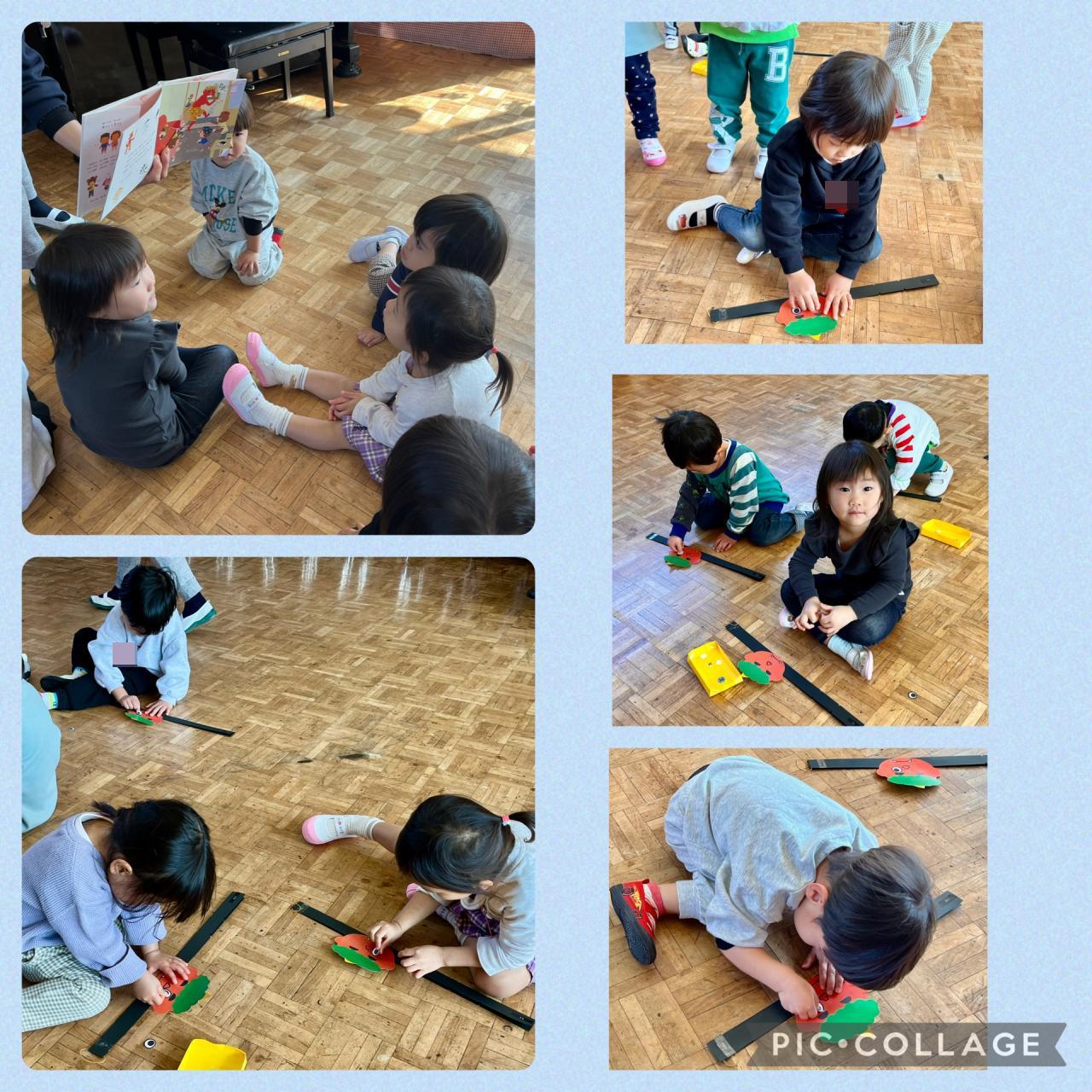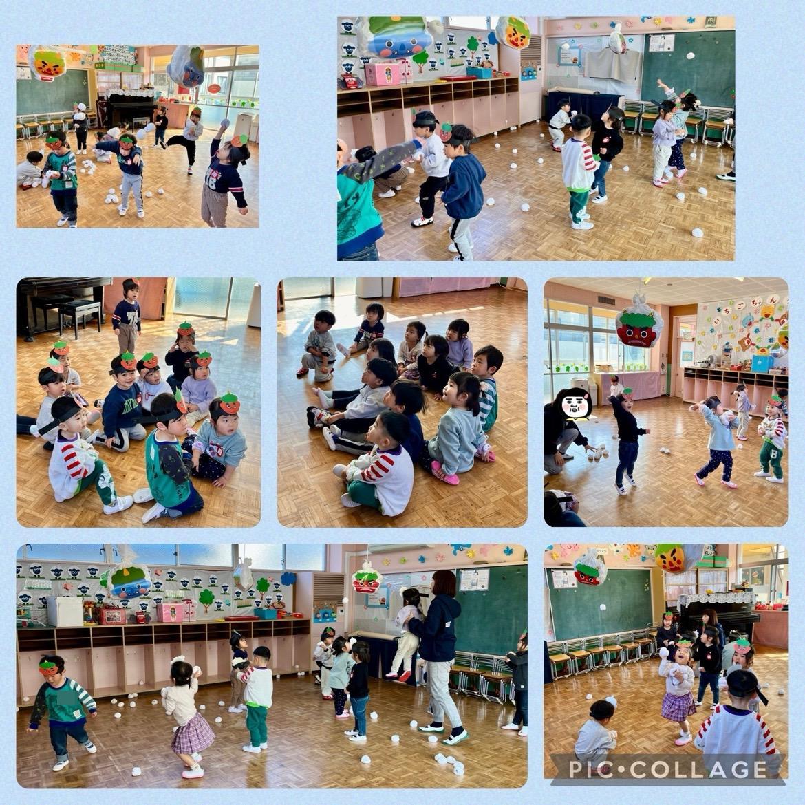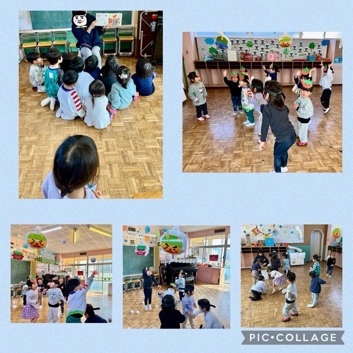 鬼と聞いて、ちょっぴり顔つきがスッとなったお友達もいましたが、赤ちゃん鬼くん、かわいいね~と話していたら、皆表情が和らぎ、♪鬼は~外!福は~内!の発声練習も立派な声で、その変わり様が微笑ましかったです!