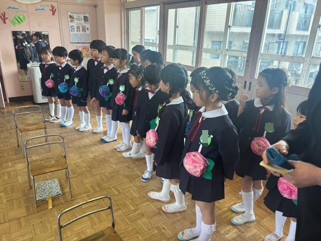 お部屋で年中さんに作ってもらったコサージュをつけて準備をします🌸