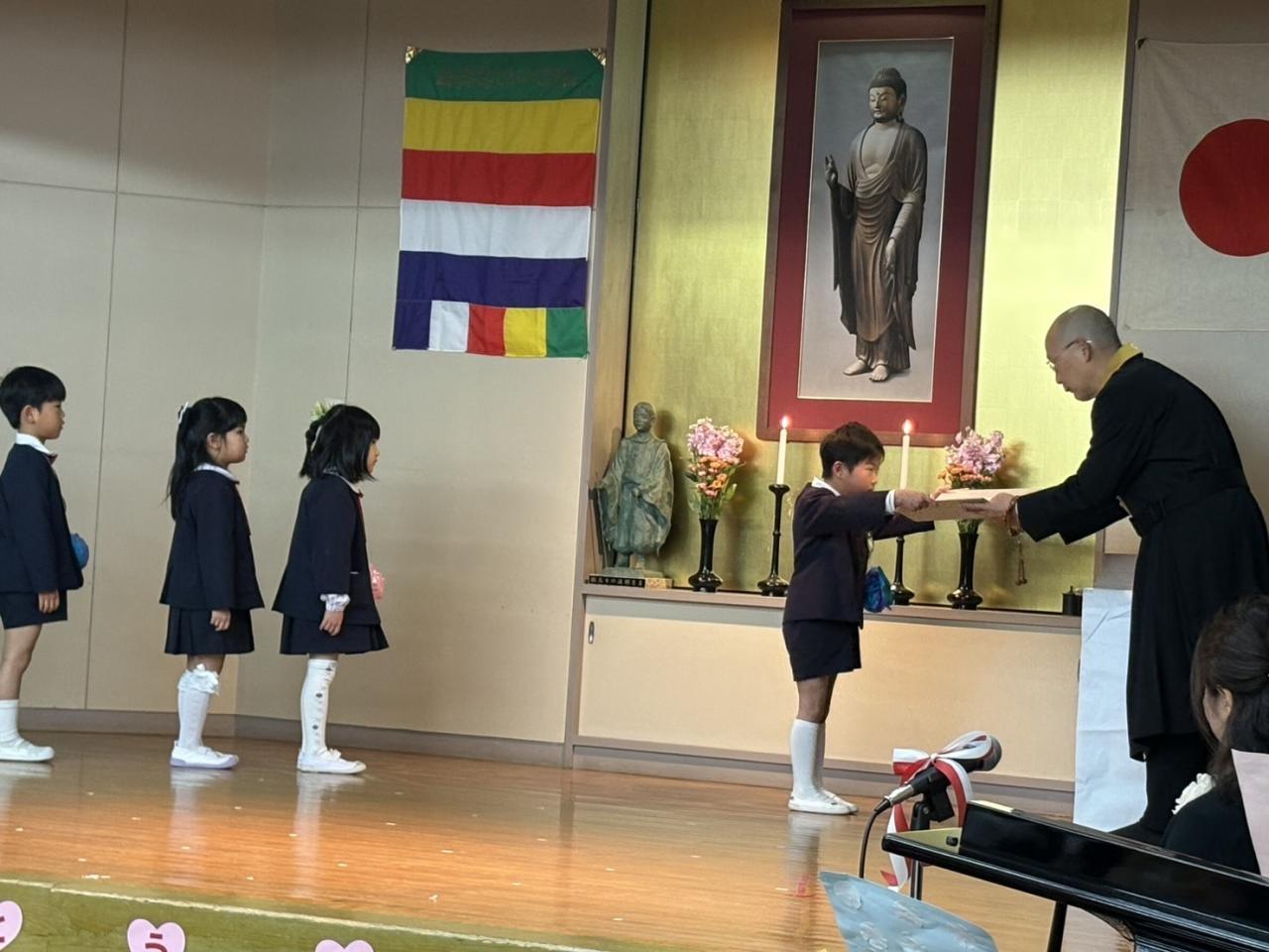 1人ずつお名前を呼んでもらって、返事をして舞台にあがり園長先生から証書を受け取ります✨