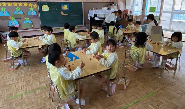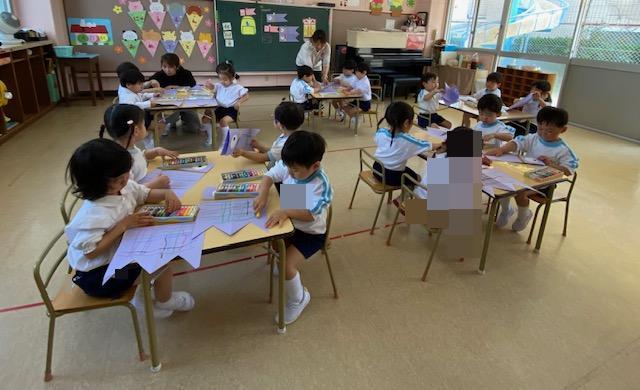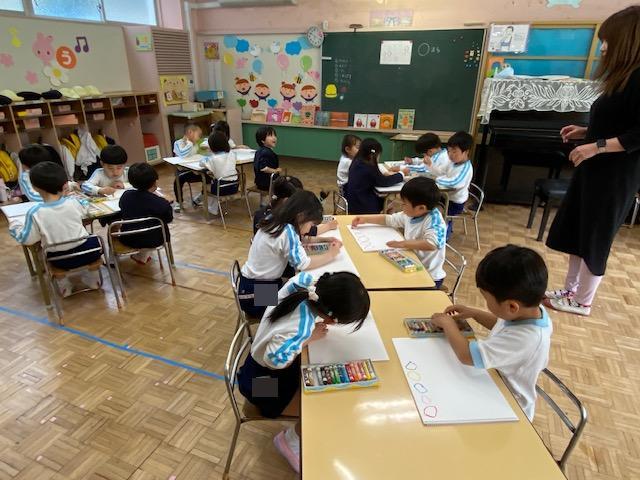 年中さんは、自由画帳のお約束をしてみんなでクレパスで楽しくお絵描きをしましたよ🌸