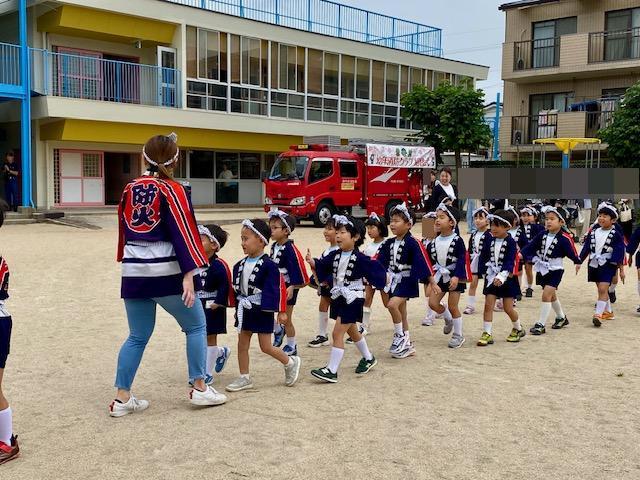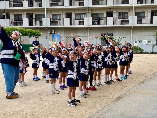 ハッピにねじり鉢巻きをして、かっこよく準備をした年長さん✨