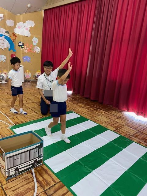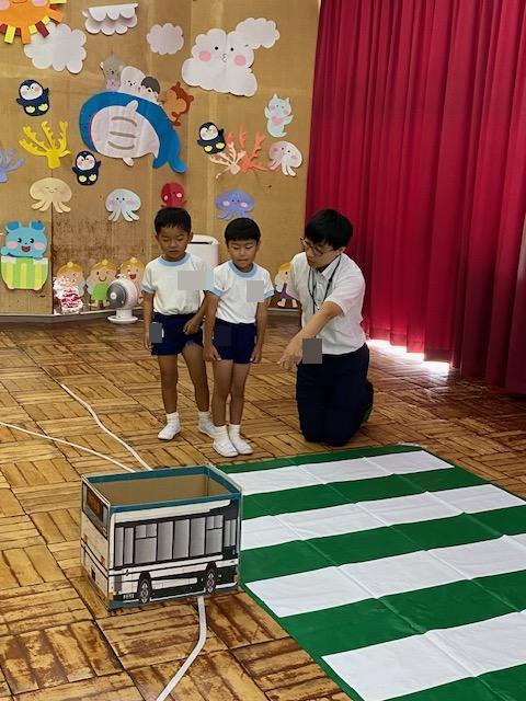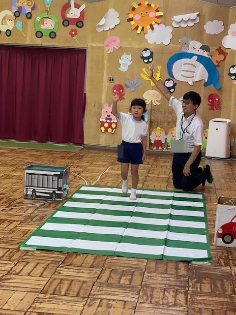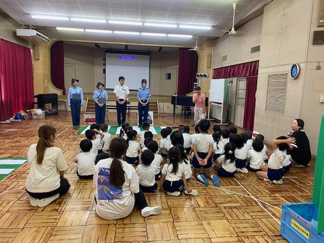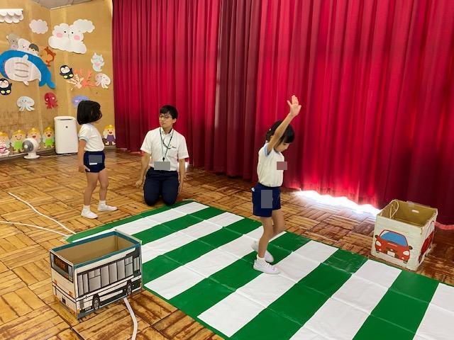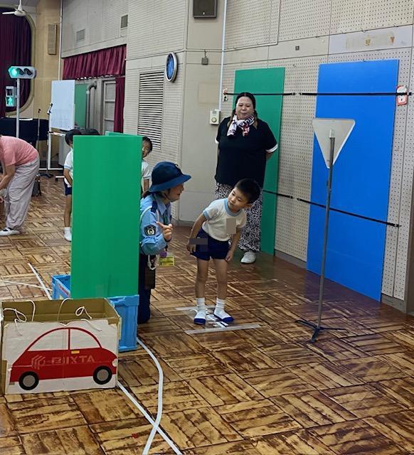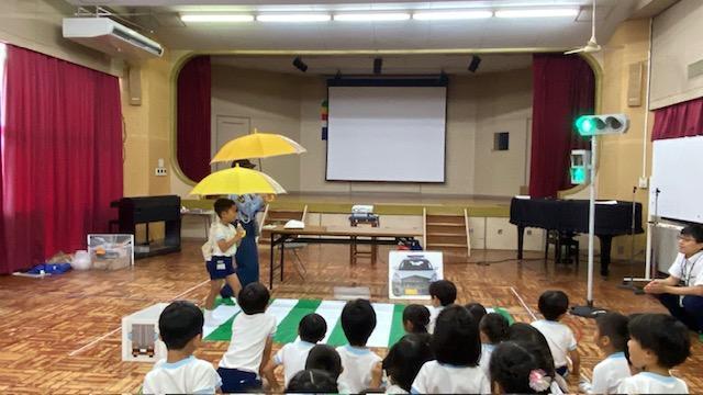来年から小学生になる年長さんを対象に警察の方と交通安全指導員の方が交通ルールについて教えてくださいました。