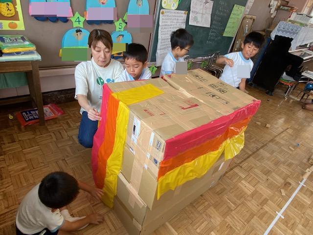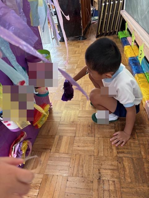 毎日少しずつグループやみんなで協力して作っていっているのですが、どんな色にするか、どんな形にするか、どうやって作るかは子どもたちと相談して決めました😌