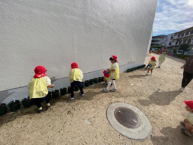 最後にお当番さんがお水やりをしてくれました!毎日朝の自由あそびの時に、お当番さんが順番で水やりをしますよ⭐楽しみにしていてくださいね💕