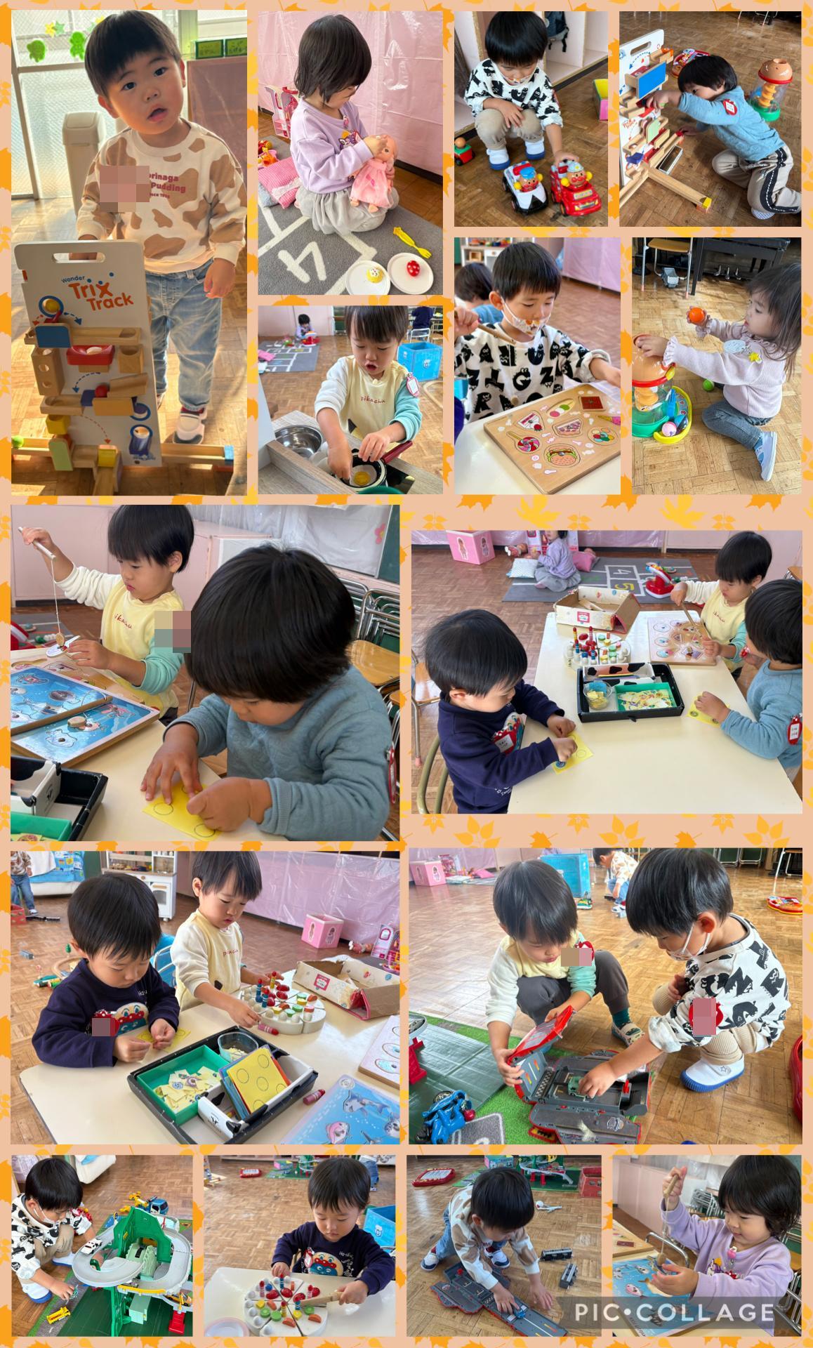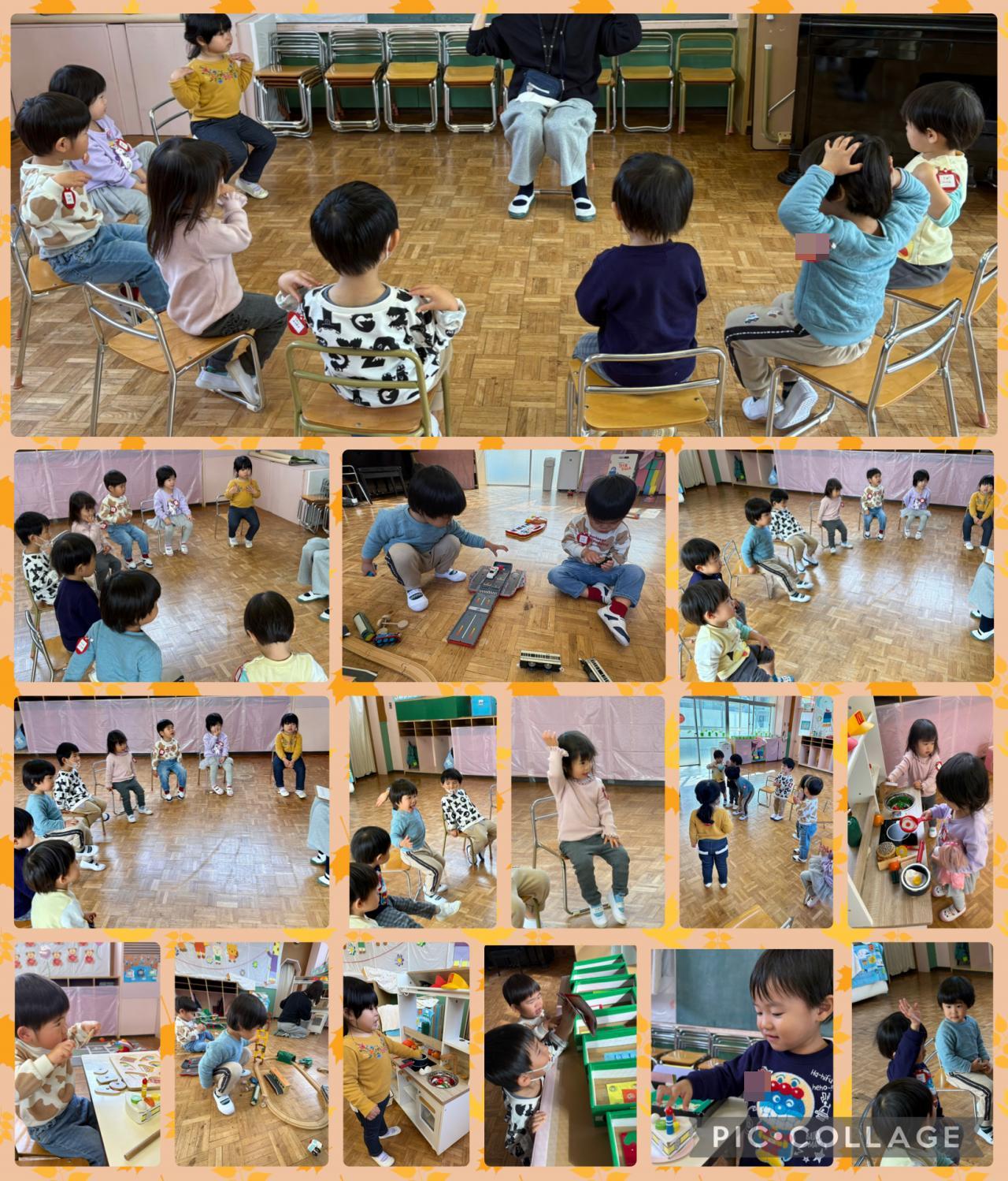 朝も、ほとんどのお友達が泣かずに遊びに夢中で、活動が始まると更にテンションがあがり、おうちの方といる時よりも、手遊びや真似っ子なども積極的にしてくれるお友達が多かったです!
