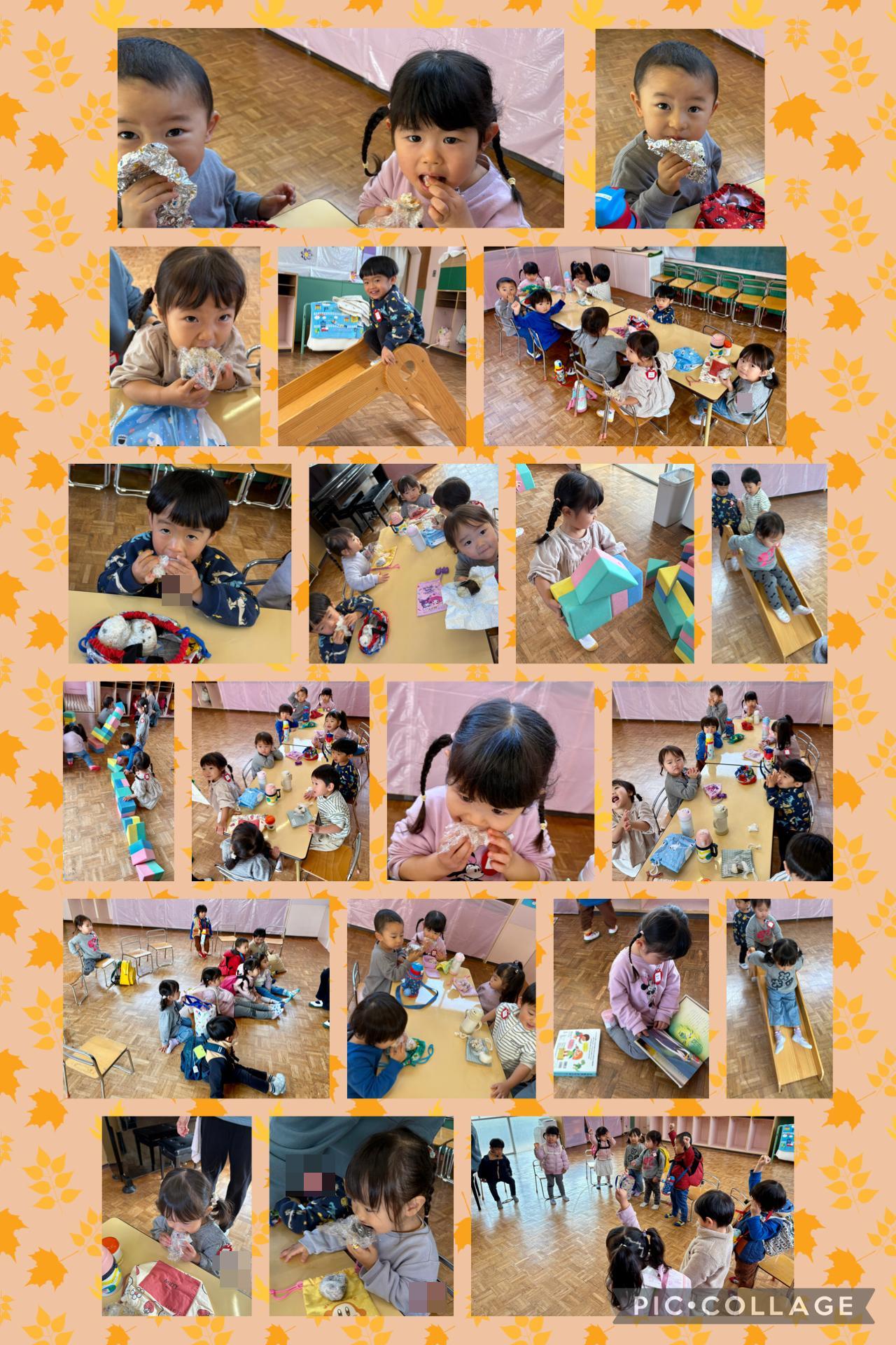 どちらのクラスも、お弁当は、食べ終わるペース(時間)に開きがありますので、食べ終わって待っているお友達に向けて絵本を読み聞かせして待つようにしておりまして、食後はすぐに激しく動かないように心がけています!