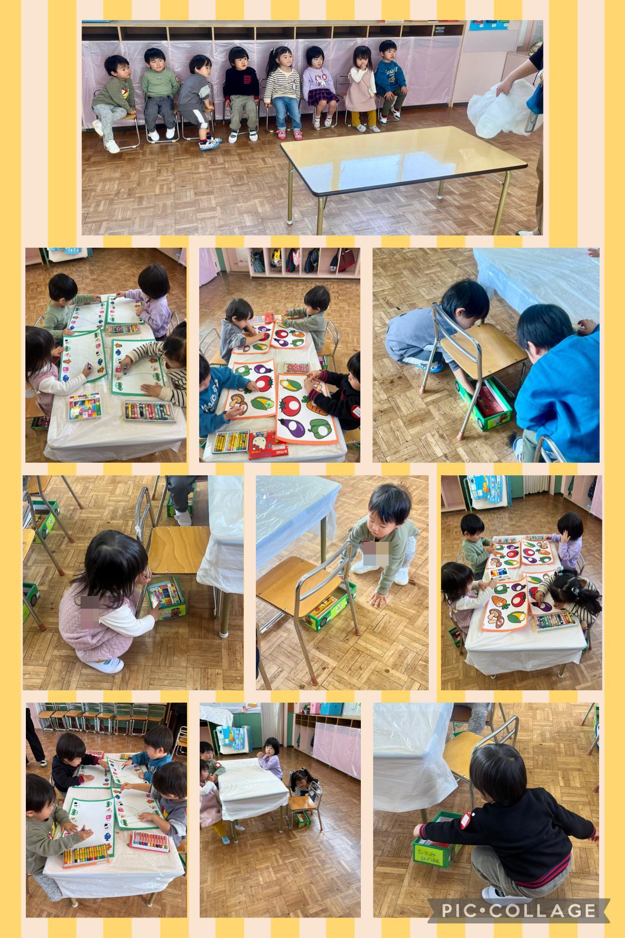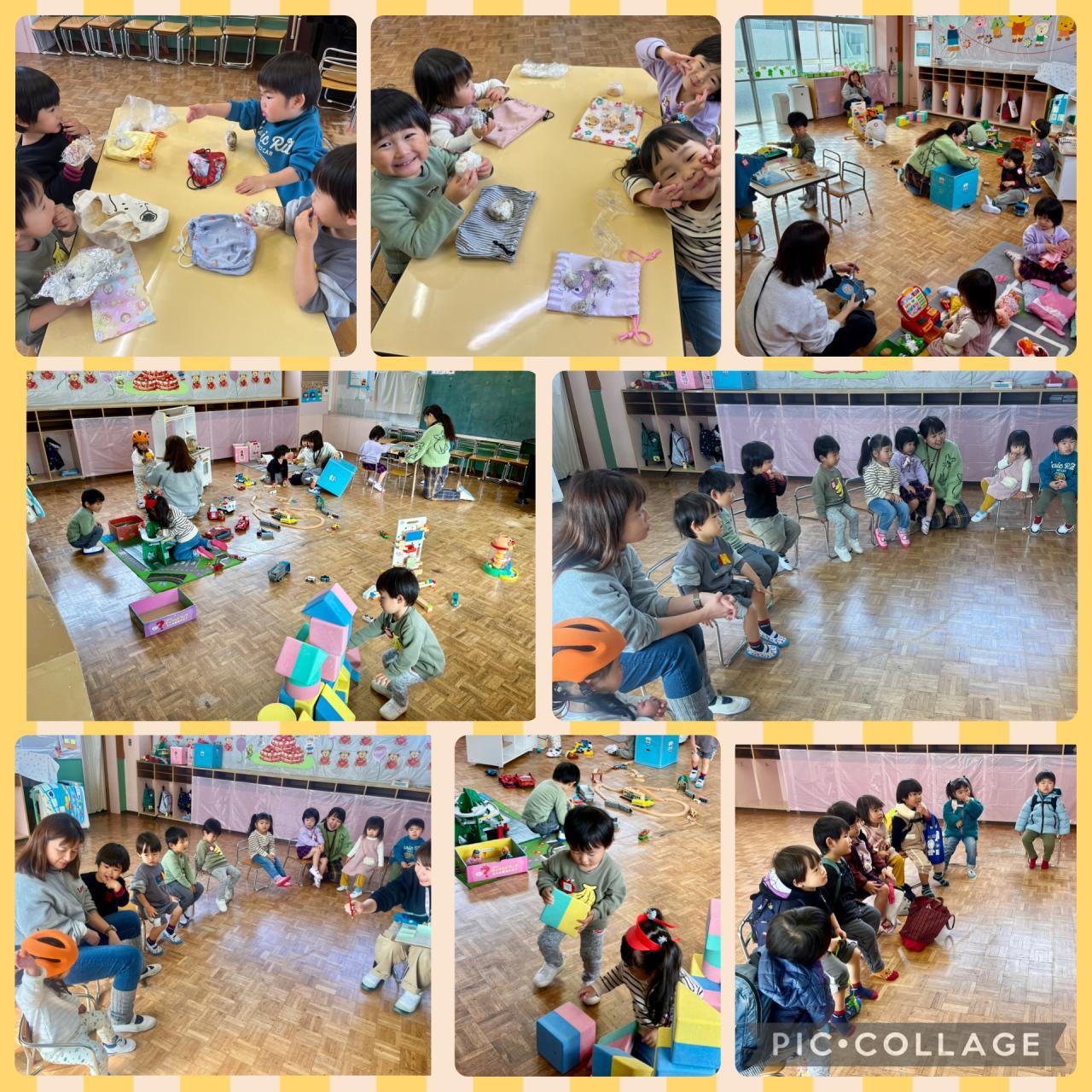 お片付けも活動の大まかな流れにも慣れてきたのか、こちらから声をかける前に自ら先の動きをする姿もちらほらと垣間見え、すごいなぁと感心させられました!逆に、慣れてきたからこそ、こちらの顔を見ながら椅子から離れてみたり、お友達と一緒だと気が大きくなるのか、まねっこをして、危ないよ!と言われるようなことを笑顔でしてみたり…この年齢ならではの姿もちゃんと見え隠れしております(笑)