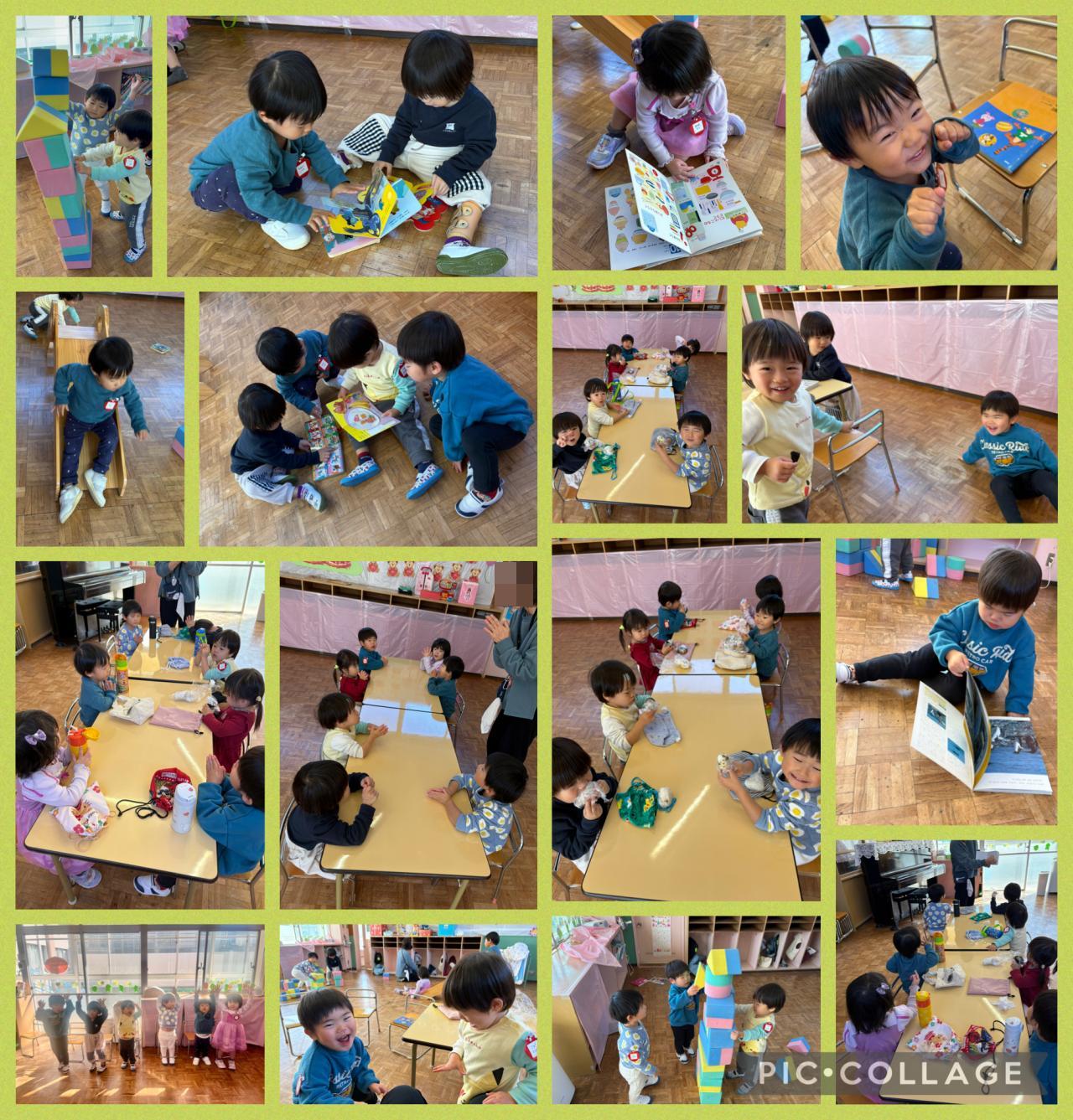 自由あそびの時間は、絵本を出して読むお子さんが多く、お友達と一緒に読む姿も増えていて微笑ましく感じています♪